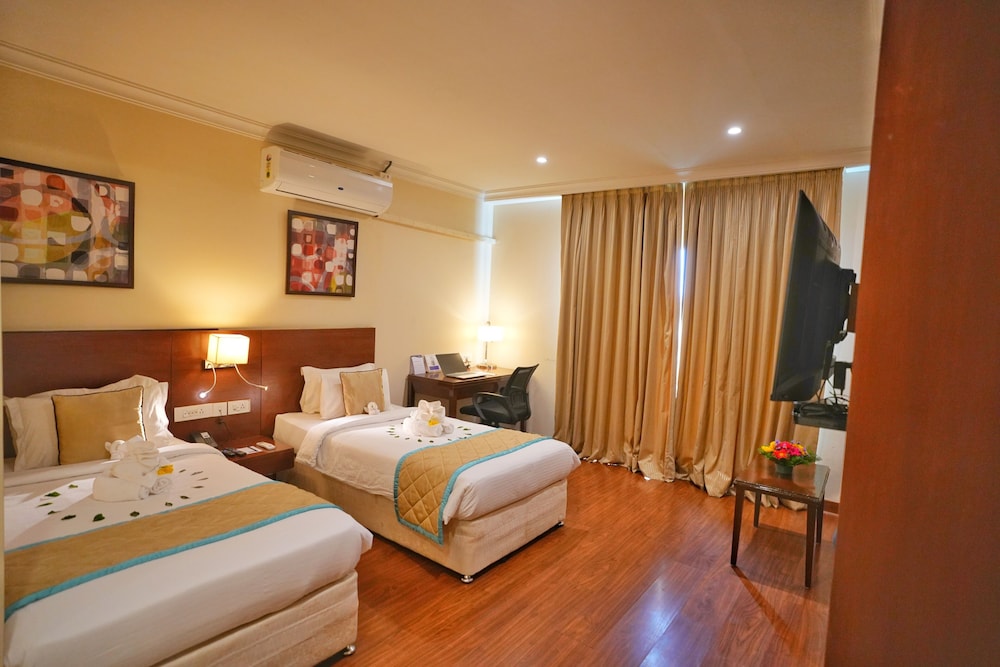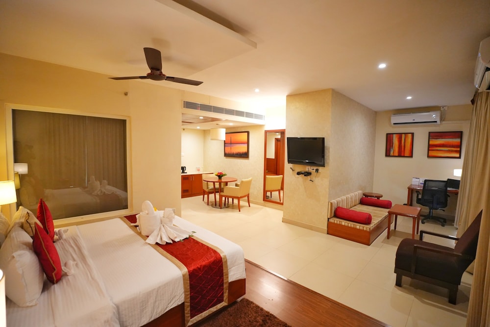 The Altruist Business Hotel ligger i hjärtat av Hyderabad, en fem minuters bilfärd från både Sarath City Capital Mall och Kotla Vijayabhaskara Reddy botaniska trädgård. Detta hotell ligger 21,7 km från Charminar och 2,6 km från Hyderabads internationella kongresscenter. Känn dig som hemma i ett av de 119 luftkonditionerade rummen med platt-tv. Gratis wi-fi gör att du kan hålla dig uppkopplad, och satellit-tv erbjuder underhållning. Privat badrum med dusch, gratis toalettartiklar och bidéer. På rummet finns telefon, värdeförvaringsskåp och skrivbord. Avstånd avrundas till närmsta decimal.