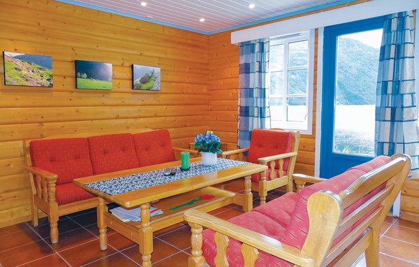 Det mysiga huset är rustikt och stilfullt inrett på samma gång. Stora fönster i västerläge i vardagsrummet erbjuder en vacker panoramautsikt över fjorden och solnedgången. Semesterhuset är välutrustat med bland annat diskmaskin och frys. Du kan hyra en tvättmaskin/torktumlare på den närliggande campingen i Frafjord.