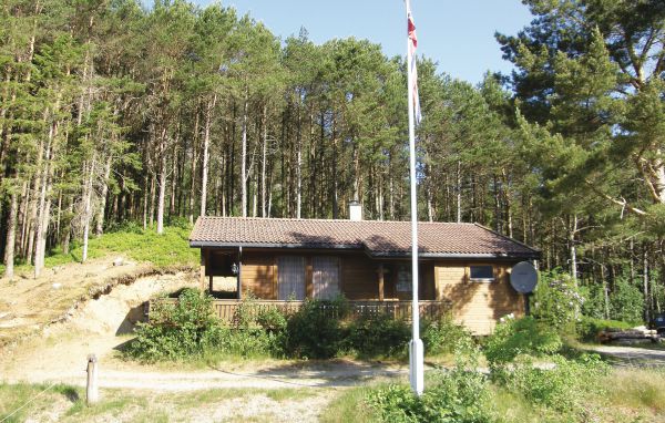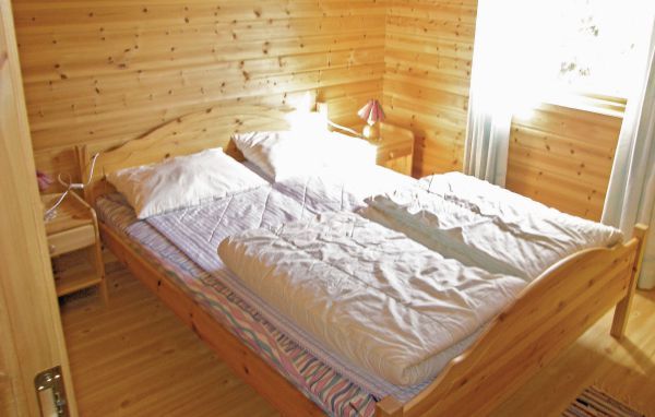 Det här trevliga semesterhuset har ett vackert läge mellan skog och vatten.