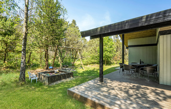 Mysigt fritidshus, vackert beläget på en ostörd naturtomt med träd i Houstrups gamla fritidshusområde. Huset har ett underbart rymligt kök-vardagsrum med vedeldad kamin och utgång till en vacker terrass med vindskydd och en Weber-bollgrill. Här finns otaliga cykel- och vandringsleder, och du kan köra till Nordsjön på bara 10 minuter. Härifrån kan du också lätt promenera till områdets aktivitetscenter med utomhuspool, tennisbana och lekplats.