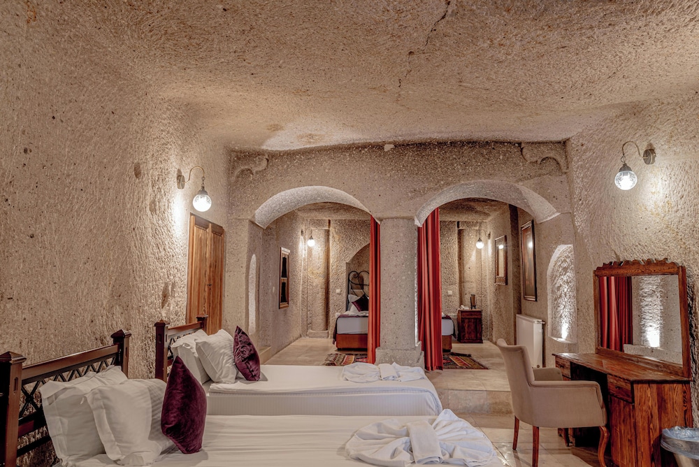 Elegance Cave Suites ligger centralt i Nevşehir, ett stenkast från Göremes nationalpark och en knapp fem minuters bilfärd från Göreme friluftsmuseum. Detta hotell med möjlighet till skidåkning ligger 2,2 km från Kärleksdalen och 4,1 km från Uçhisar slott. Känn dig som hemma i ett av de 13 luftkonditionerade rummen med privata bubbelpooler inomhus och LCD-tv. Sängen har memory foam-madrass och sängtillbehör av högsta kvalitet. Gratis wi-fi gör att du kan hålla dig uppkopplad, och satellit-tv erbjuder underhållning. På rummet finns telefon, skrivbord och separata sittutrymmen. Avstånd avrundas till närmsta decimal.