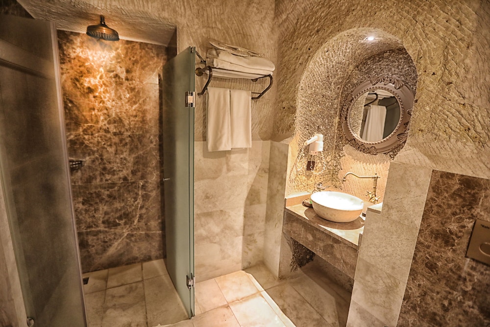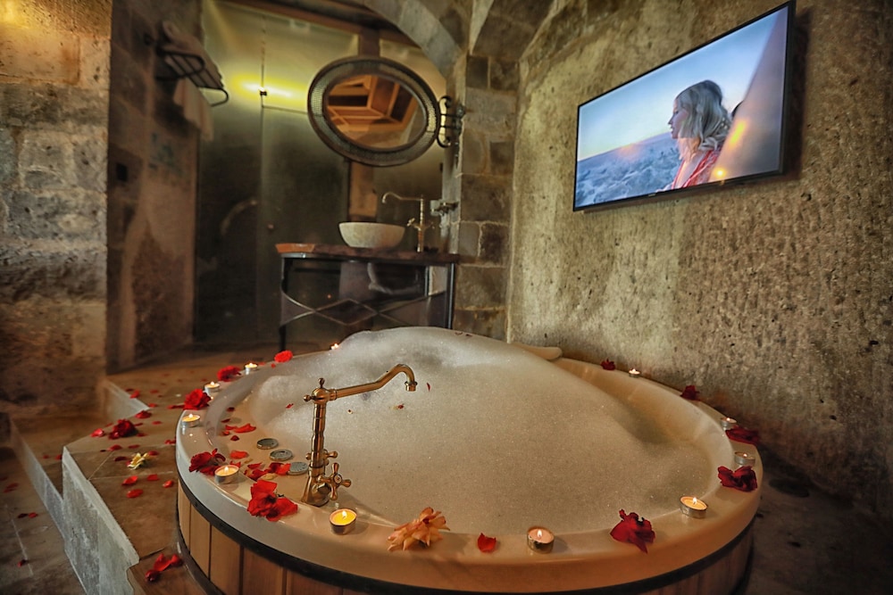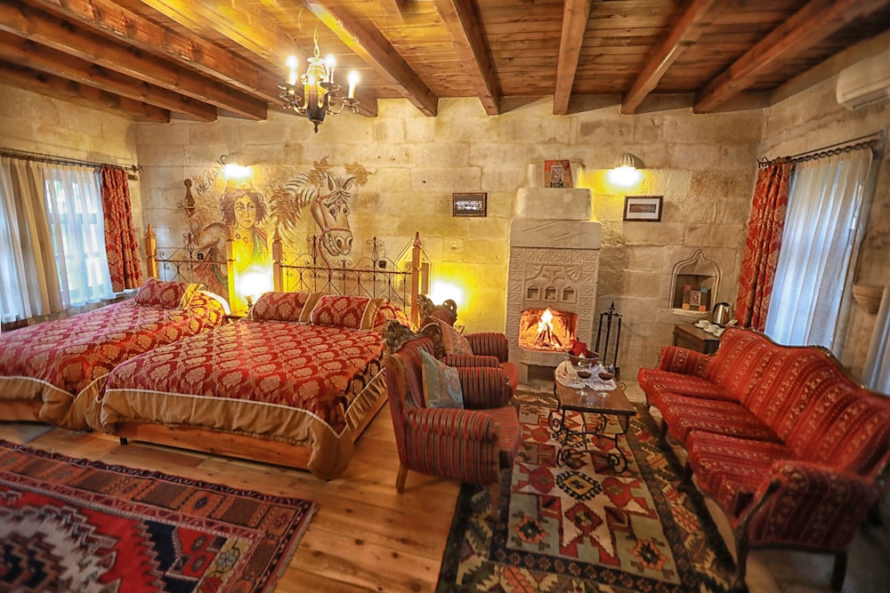 Traveller's Cave Hotel ligger i Nevşehir i en nationalpark, ett stenkast från Göremes nationalpark och 3 minuters bilfärd från Göreme friluftsmuseum. Detta hotell ligger 2 km från Kärleksdalen och 4,1 km från Uçhisar slott. Känn dig som hemma i ett av de 21 luftkonditionerade rummen med eldstäder och smart-tv. Gratis wi-fi gör att du kan hålla dig uppkopplad, och digital-tv erbjuder underhållning. På rummet finns telefon, värdeförvaringsskåp och kaffe- och tebryggare. Avstånd avrundas till närmsta decimal.