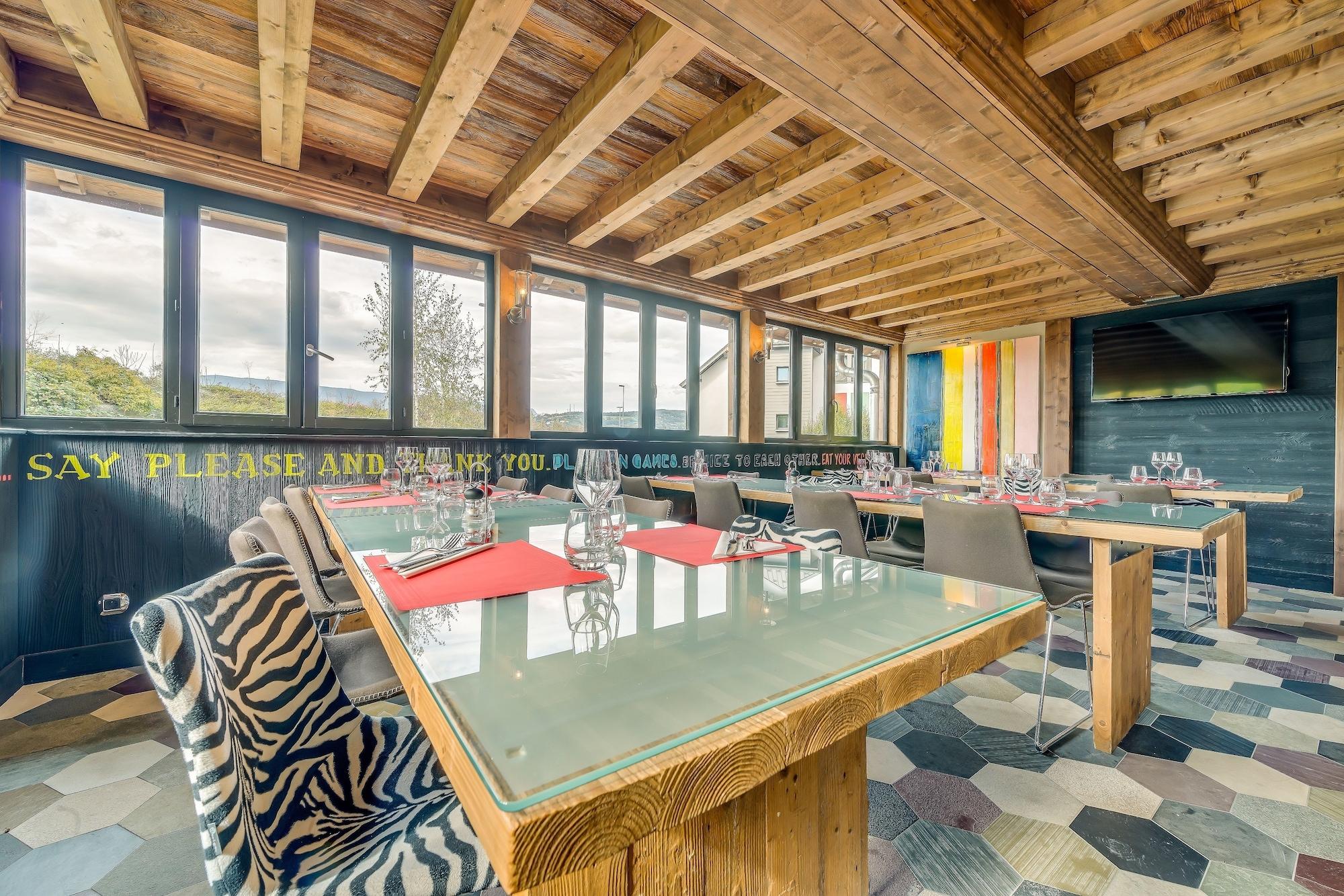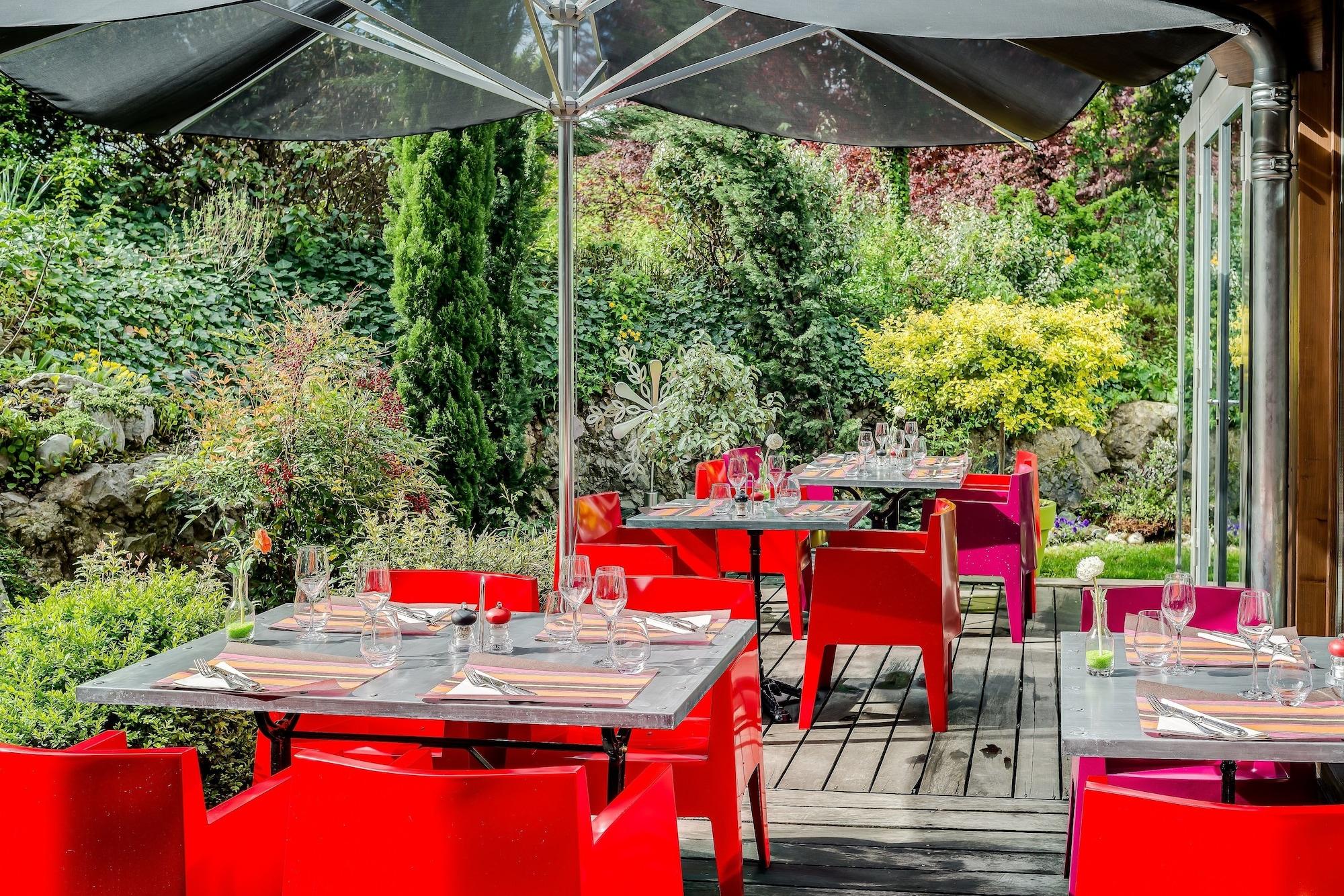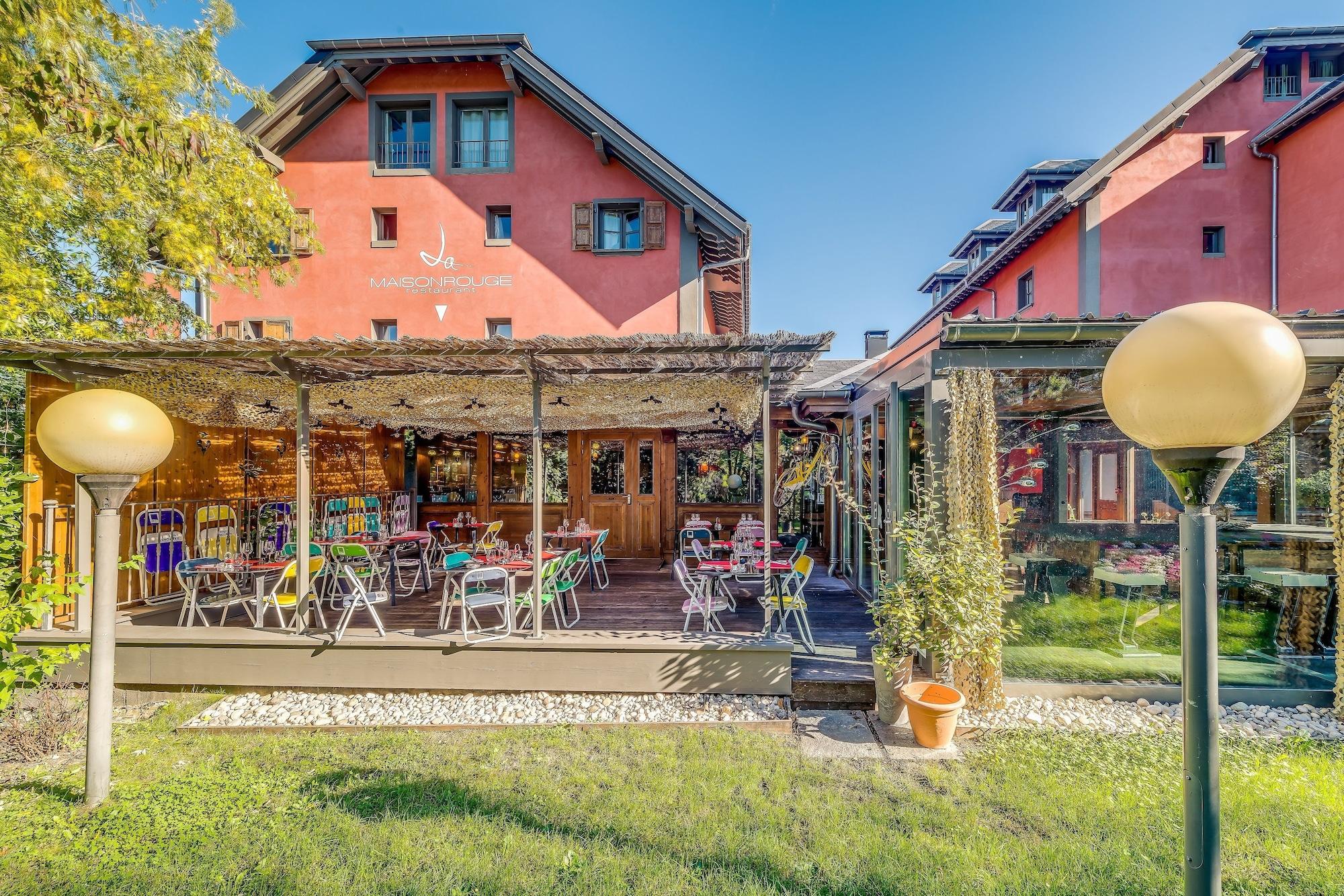 När du bor på La Maison Rouge i Barberaz, bor du nära flygplatsen, inom 15 minuter med bil från Lac du Bourget och Parc des Loisirs de Buisson Rond. Detta romantiska hotell ligger 3, 4 km från Centre de Congres Le Manege och 3, 6 km från Carre Curial. Koppla av på spat med full service, där du kan njuta av massage, kroppsbehandlingar och ansiktsbehandlingar. Du kommer säkert att uppskatta fritidsfaciliteterna, som inkluderar 2 bubbelpooler, ett ångbad och ett fitnesscenter. Detta hotell erbjuder dessutom kostnadsfri trådlös internetuppkoppling, presentbutiker/tidningskiosker och en tv i allmänna utrymmen. Bekvämligheterna inkluderar ett business center, kostnadsfria tidningar i lobbyn och en reception öppen dygnet runt. Detta hotell har 9 mötesrum tillgängliga för evenemang. Du kan äta på La Maison Rouge som serverar gäster på La Maison Rouge, eller besöka snackbaren/delin. Släck törsten med din favoritdrink i baren/loungen. Frukostbuffé serveras på vardagar från 6:30 till 9:30 och på helger från 7:00 till 10:00 mot en avgift. Bo i ett av 77 gästrum med platt-tv. Kostnadsfri trådlös internetuppkoppling håller dig uppkopplad och satellitprogram erbjuds för din underhållning. I de privata badrummen finns kostnadsfria toalettartiklar och hårtorkar. Bekvämligheterna inkluderar telefoner, skrivbord och kostnadsfria tidningar.