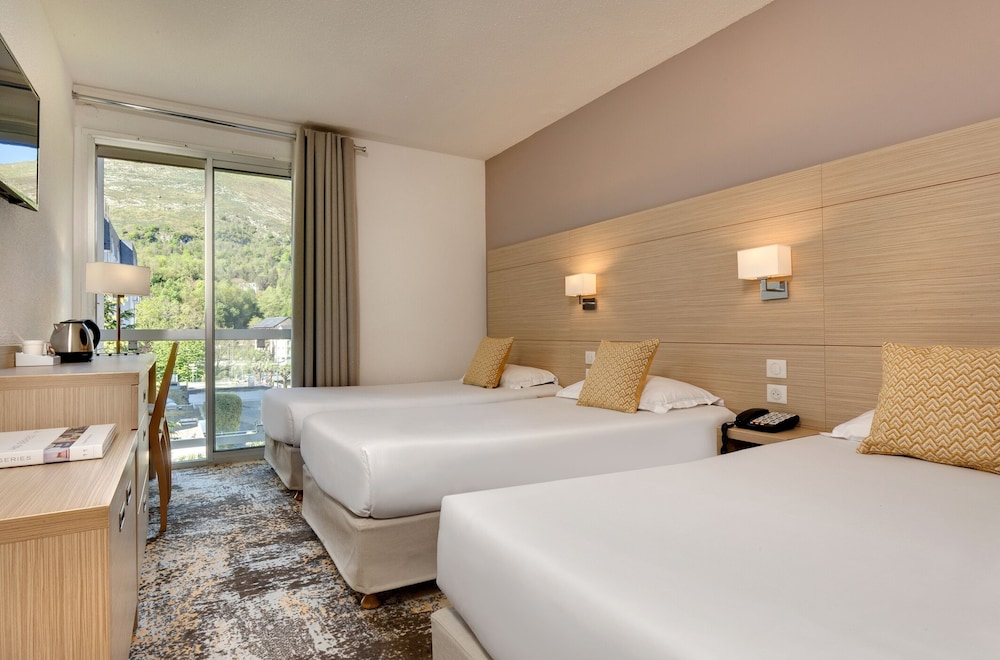 Hotel Mediterranee ligger i Lourdes vid floden, en kvarts promenad från både Notre-Dame de l'Immaculee-Conception och Immaculée-Conception de Lourdes basilika. Detta hotell ligger 1 km från Grotte de Massabielle och 0,5 km från Le Petit Lourdes. Känn dig som hemma i ett av de 171 luftkonditionerade rummen med platt-tv. Gratis wi-fi gör att du kan hålla dig uppkopplad, och satellit-tv erbjuder underhållning. Privat badrum med badkar eller dusch, gratis toalettartiklar och bidéer. På rummet finns värdeförvaringsskåp och skrivbord. Städning erbjuds dagligen. Avstånd avrundas till närmsta decimal.