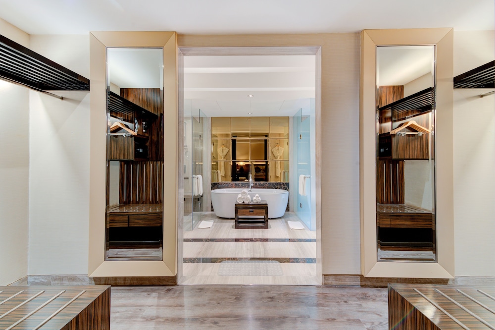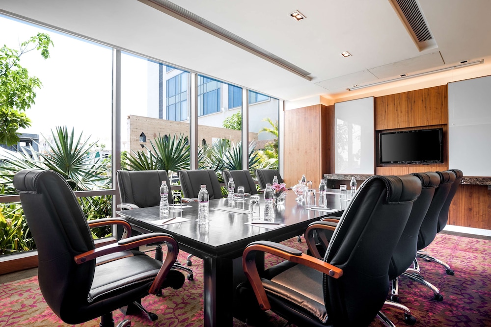 Hyatt Ahmedabad ligger mitt i Ahmedabad, ett stenkast från Ahmedabad One Mall och 4 minuters bilfärd från Kankaria Lake. Denna resort i lyxstil ligger 4,2 km från ISCON Mall och 4,7 km från Sardar Patel-stadion. Känn dig som hemma i ett av de 176 luftkonditionerade rummen med kylskåp och minibarer. Sängen har bäddmadrass och sängtillbehör av högsta kvalitet. Gratis wi-fi ser till att du kan hålla dig uppkopplad, och en 55-tums smart-tv med digitalkanaler erbjuder all underhållning du behöver. Privat badrum med dusch, lyxtoalettartiklar och hårtorkar. Avstånd avrundas till närmsta decimal.