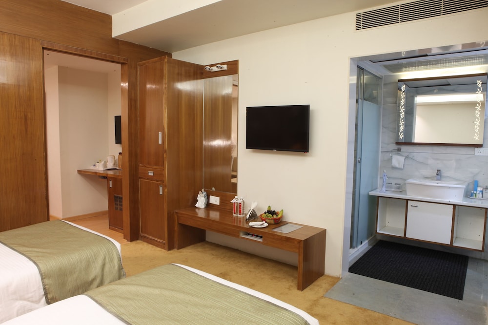 Silver Cloud Hotel & Banquets Ahmedabad ligger centralt i Ahmedabad, en 4 minuters bilfärd från Airport Road och 6 minuter från Narendra Modi Stadium. Detta hotell med spa ligger 0,3 km från Gandhi Ashram och 0,5 km från Sabarmati Riverfront Promenade. Känn dig som hemma i ett av de 75 luftkonditionerade rummen med kylskåp och minibarer. Sängen har duntäcken och sängtillbehör av högsta kvalitet. Gratis wi-fi gör att du kan hålla dig uppkopplad, och en LED-tv med digitalkanaler erbjuder all underhållning du behöver. Badrummen har gratis toalettartiklar och tandborstar och tandkräm. Avstånd avrundas till närmsta decimal.