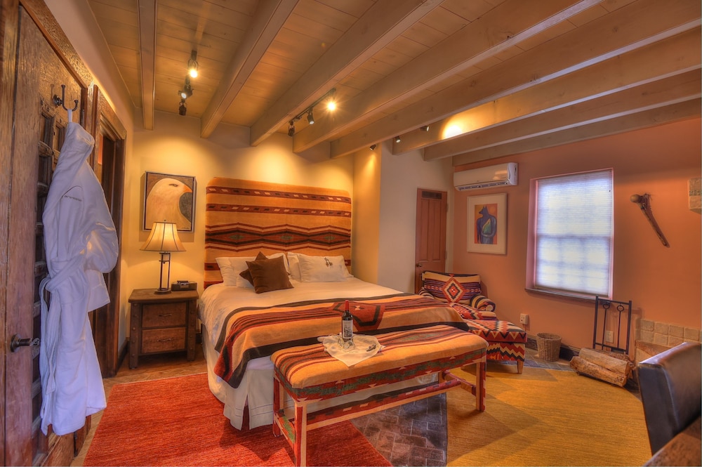 The Inn at Vanessie ligger i Santa Fe (i området Centrala Santa Fe), 1 minuter med bil från Santa Fe Plaza och 7 minuter från Meow Wolf. Detta hotell i lyxstil ligger 0,1 km från Santa Fe River Park och 0,3 km från Santuario De Nuestra Senora de Guadalupe. Skäm bort dig och bo i ett av 21 individuellt inredda rum med eldstäder och smart-tv. Sängen har bäddmadrass och duntäcken. Kabel-tv erbjuder underhållning. På rummet finns värdeförvaringsskåp och skrivbord. Städning erbjuds dagligen. Avstånd avrundas till närmsta decimal.