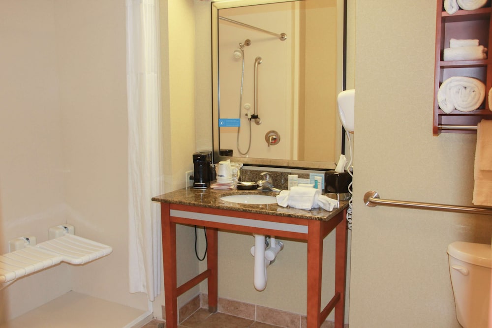 I Radcliff ligger Hampton Inn & Suites Radcliff - Fort Knox på landet, en 1 minuters bilfärd från Boundary Oak Distillery och 7 minuter från Saunders Springs Nature Preserve. Detta hotell ligger 19,7 km från Ohio River Valley och 7,8 km från Heartland Golf Club. Känn dig som hemma i ett av de 72 luftkonditionerade rummen med kylskåp och mikrovågsugn. Gratis fast internetanslutning och wi-fi. Underhållning erbjuds i form av en 32-tums LCD-tv med satellitkanaler. Privat badrum med gratis toalettartiklar och hårtorkar. På rummet finns skrivbord och kaffe- och tebryggare. Städning erbjuds dagligen. Avstånd avrundas till närmsta decimal.