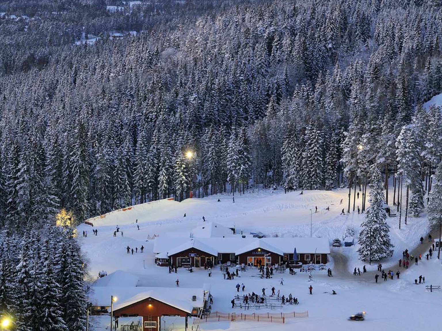 10 varierade pister och perfekta förhållanden för barn och nybörjare. 6 liftar varav en snabb 6 personers stollift. Isaberg har en riktigt bra skidskola och snökanonerna ger snögaranti från december till april. Skidcentret ligger ca 5 km från stugbyn. Här köper man liftkort, hyr skidor och bokar skidskola. Från campingplatsen ca 300-400 meter från stugbyns centrala byggnad, går det en 4-stols lift till toppen av skidanläggningen. I anslutning till denna finns det 2 gröna nedfarter.