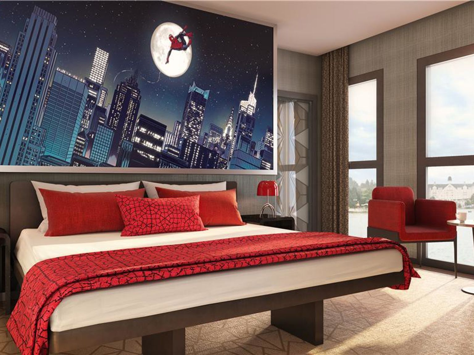 Bo i superhjältestil på Marvel-hotell – bara 10 minuters promenad från parkerna.