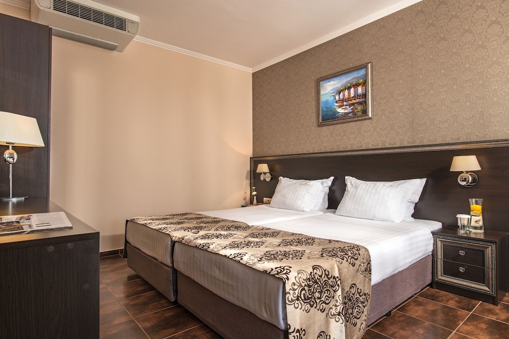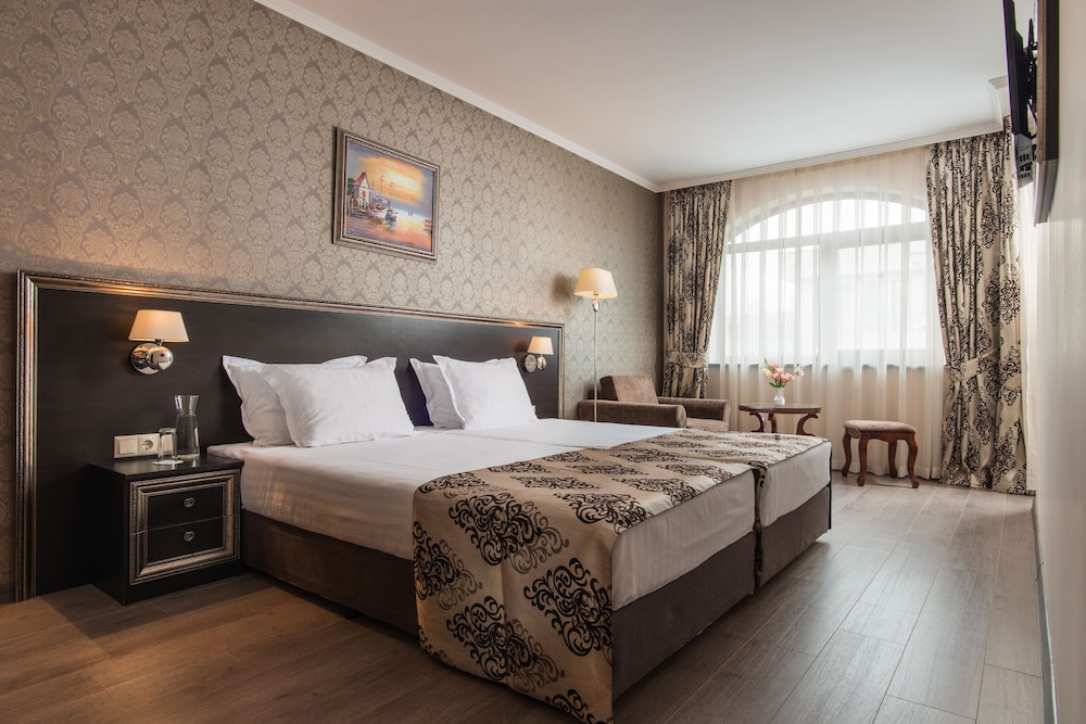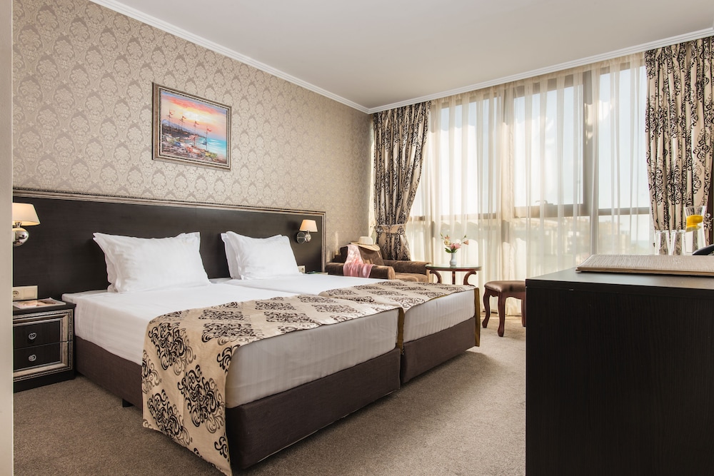 Hotel & SPA Diamant Residence - All Inclusive ligger i Nessebar nära stranden, en 2 minuters bilfärd från Sunny Beach och 6 minuter från Aqua Paradise. Detta boende med all-inclusive ligger 0,2 km från Nesebar stadion och 0,6 km från Södra Sunny Beach. Känn dig som hemma i ett av de 222 luftkonditionerade rummen med minibarer och platt-tv. Gratis wi-fi gör att du kan hålla dig uppkopplad, och kabel-tv erbjuder underhållning. Privat badrum med dusch, gratis toalettartiklar och hårtorkar. Gäster erbjuds telefon och skrivbord, såväl som städning dagligen. Avstånd avrundas till närmsta decimal.