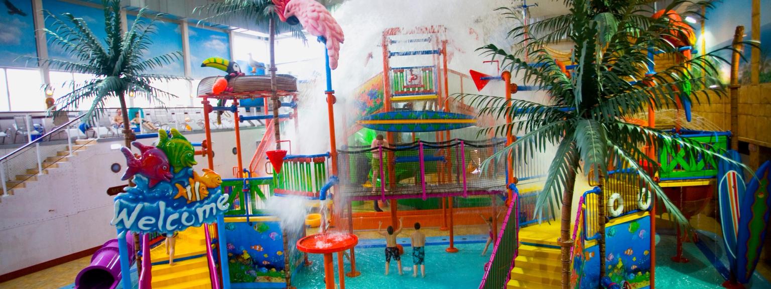 Stort vattenland med nöjen för hela familjen och familjelägenheter för upp till 7 personer.