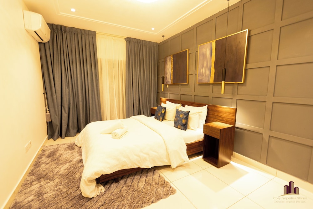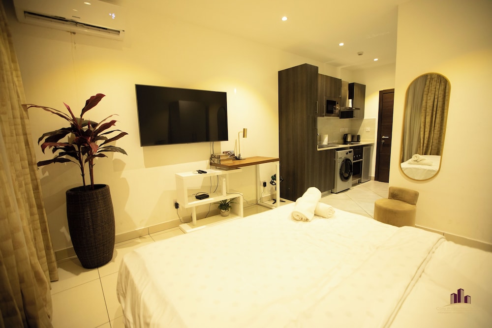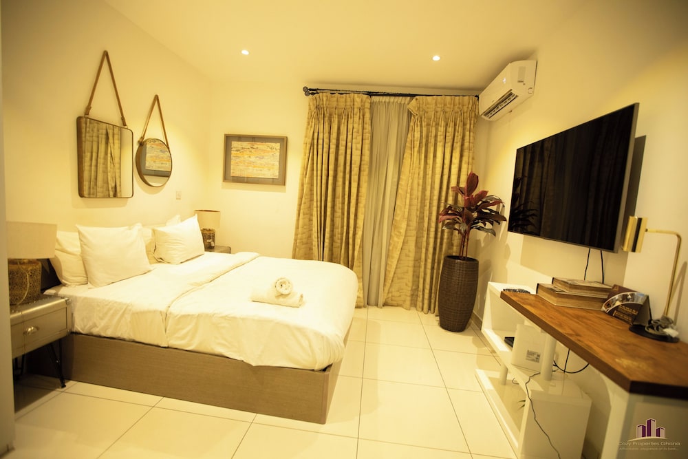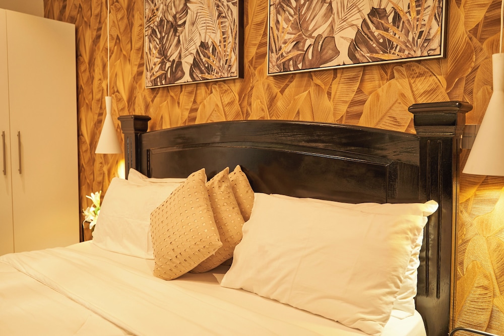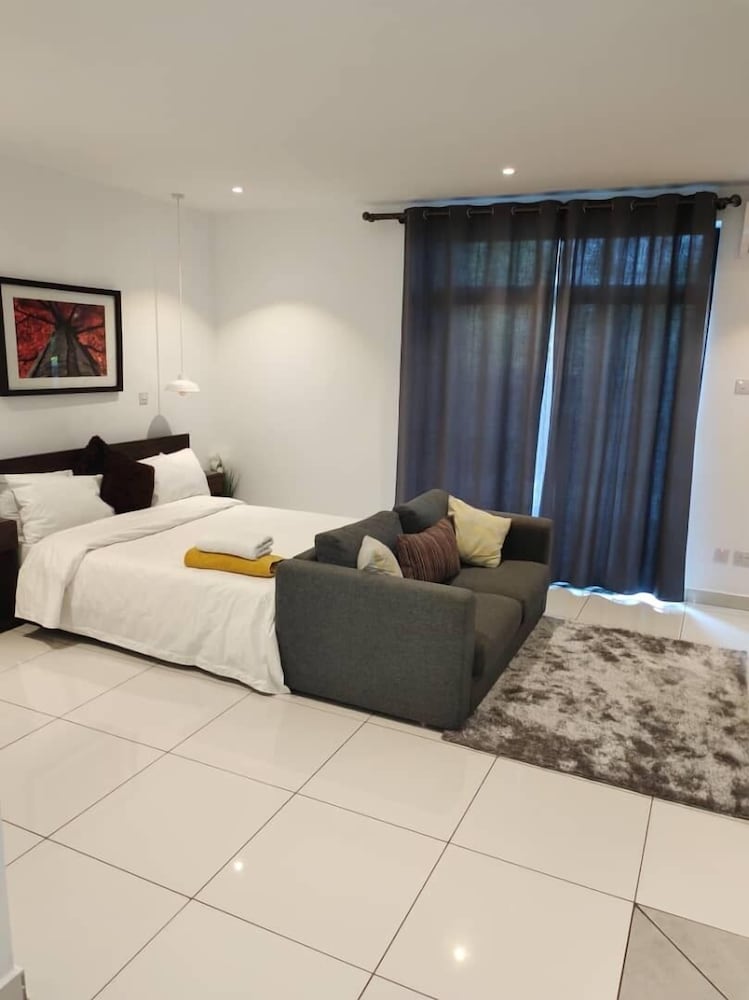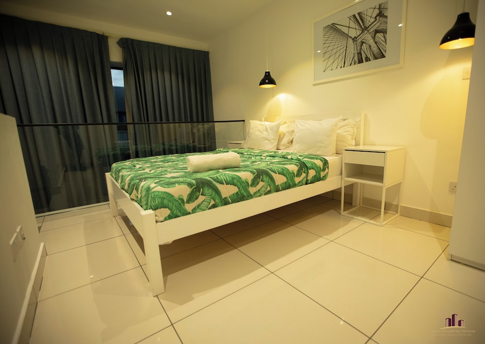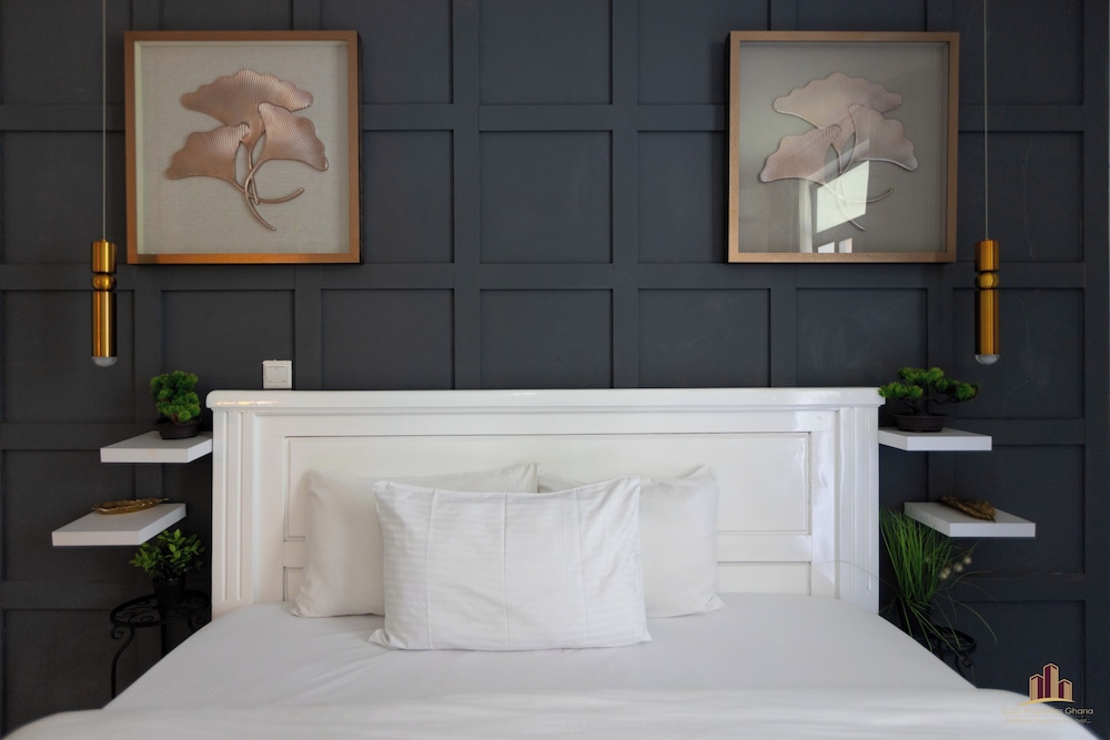 Deluxe Embassy Gardens ligger i Accra (i området Cantonments), 1 minuter med bil från USA:s ambassad och 8 minuter från Accra Mall. Detta lägenhetshotell i lyxstil ligger 5,5 km från Labadi Beach och 12,7 km från Teshie Beach. Känn dig som hemma i ett av de 30 individuellt inredda rummen som har pentry med stor kyl/frys och ugn. Gratis wi-fi gör att du kan hålla dig uppkopplad. På rummet finns mikrovågsugnar och tvättmaskiner. Avstånd avrundas till närmsta decimal.