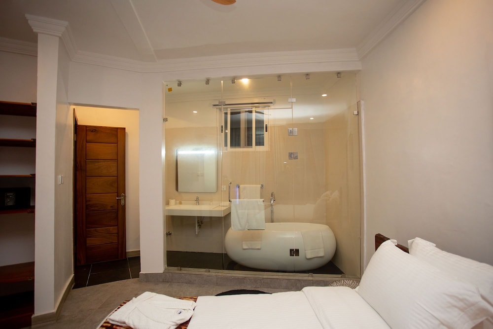 I Kokrobite ligger La Villa Aphro Ghana vid havet, en tio minuters bilfärd från både Kokrobite Beach och House Party Karts. Detta hotell vid stranden ligger 31,8 km från Accra Mall och 34,5 km från Labadi Beach. Känn dig som hemma i ett av de 12 rummen med smart-tv. Gratis wi-fi gör att du kan hålla dig uppkopplad, och satellit-tv erbjuder underhållning. Badrummen har badkar och dusch, djupa badkar och gratis toalettartiklar. Avstånd avrundas till närmsta decimal.