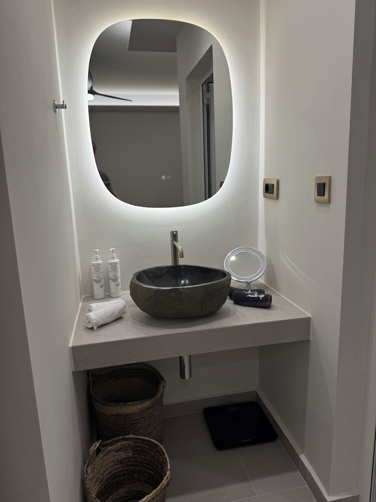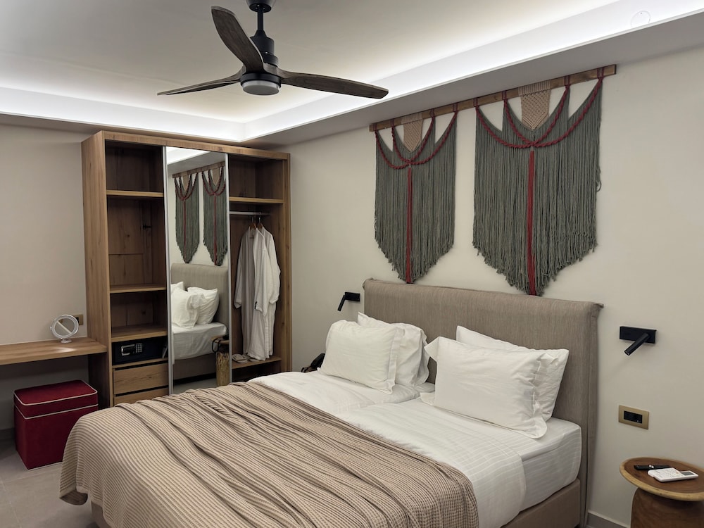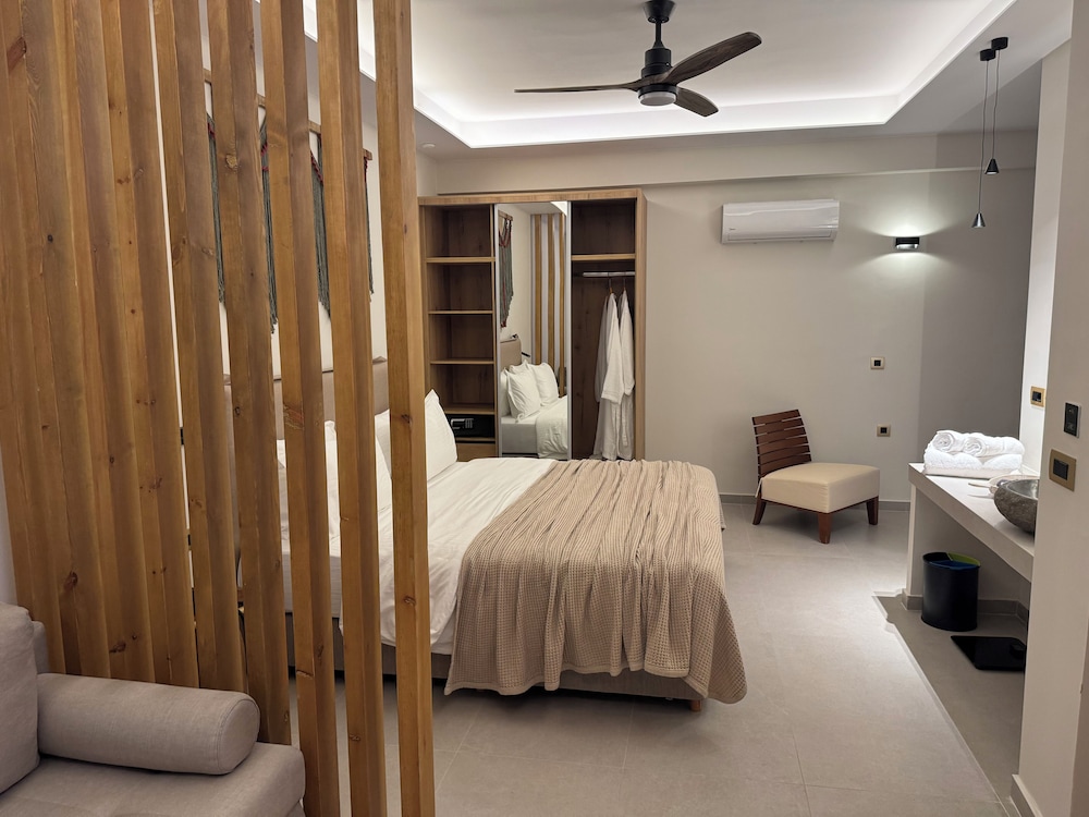 I Chania ligger The Noverian Antama Organic Beach Resort Chania, ett stenkast från Agia Marina strand och 13 minuters promenad från Platanias strand.  Detta hotell vid stranden ligger 5 km från Agioi Apostoloi strand och 7,3 km från Golden Beach. Känn dig som hemma i ett av de 21 individuellt möblerade rummen med kylskåp och smart-tv. Gratis wi-fi gör att du kan hålla dig uppkopplad, och digital-tv erbjuder underhållning. Badrum med dusch, regndusch och gratis toalettartiklar. På rummet finns telefon, värdeförvaringsskåp och minibarer. Avstånd avrundas till närmsta decimal.