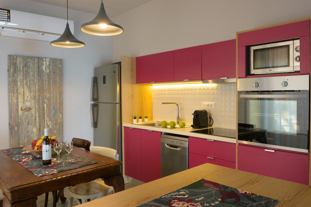 Villa Olga ligger i Agios Nikolaos, en tio minuters bilfärd från både Eloúnda Salinas och Eloundas väderkvarnar. Detta pensionat ligger 4,6 km från Poros Eloundas kristna basilika och 4,6 km från Chiona strand. Känn dig som hemma i ett av de 6 luftkonditionerade rummen som har kök med stor kyl/frys och ugn. Gratis wi-fi gör att du kan hålla dig uppkopplad, och en platt-tv erbjuder underhållning. På rummet finns skrivbord och kaffe- och tebryggare. Städning erbjuds varje vecka. Avstånd avrundas till närmsta decimal.