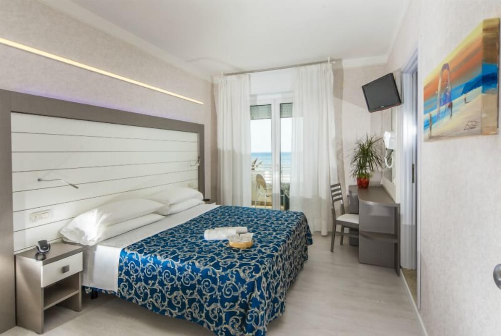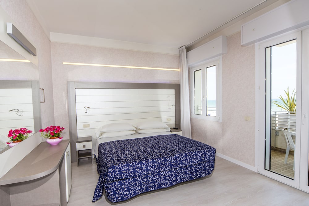 Hotel RECORD ligger i Riccione nära flygplatsen, en kvart med bil från både Rimini-stranden och Misano World Circuit Marco Simoncelli. Detta hotell vid stranden ligger 14 km från Fiera di Rimini och 16,1 km från Italien i miniatyr. Känn dig som hemma i ett av de 39 luftkonditionerade rummen med minibarer och LCD-tv. Gratis wi-fi gör att du kan hålla dig uppkopplad, och satellit-tv erbjuder underhållning. Privat badrum med dusch, regndusch och bidéer. På rummet finns värdeförvaringsskåp, skrivbord och telefon med gratis lokalsamtal. Avstånd avrundas till närmsta decimal.