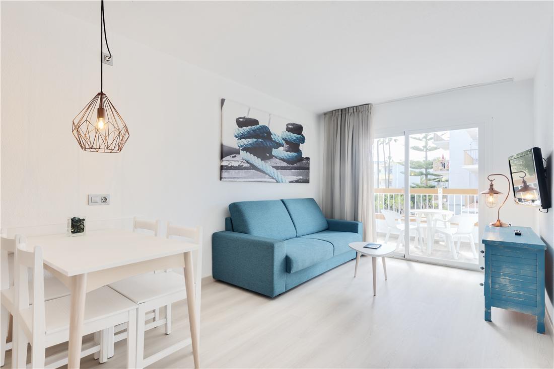 Stort poolområde med lummig trädgård med solstolar och poolbar. Här finns också pizzeria, cykeluthyrning, internethörna, lekplats, volleyboll och inomhuspool. För dig som vill ha mat & dryck inkluderat i priset rekommenderar vi bokning av All Inclusive, antingen standard eller specialpaketet, det sista har ett större och bättre utbud. All Inclusive special kan också kombineras med 3 måltider på intilliggande restauranger. Dag- och kvällsunderhållning för hela familjen flera gånger i veckan (slutar 24.00). Ljusa och trevliga lägenheter med antingen balkong eller terrass. Från anläggningen är det gångavstånd till Alcudias långgrunda strand och den charmerande hamnen med sina många uterestauranger och barer. Prova gärna hotellets pizzeria som är en av stans bästa.