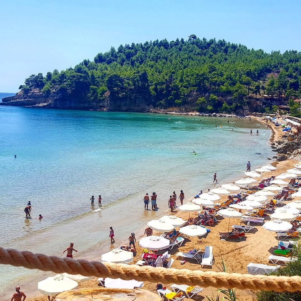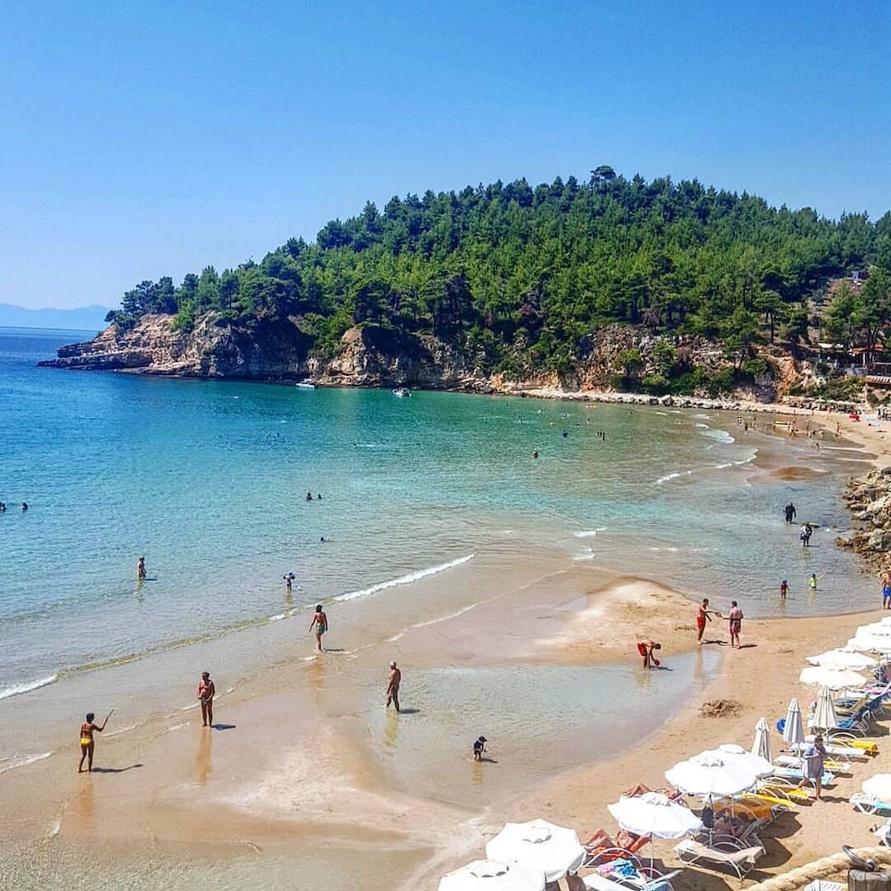 Alonissos Beach Bungalows & Suites Hotel ligger i Alonissos på stranden, en kort 1 minuters promenad från Chrisi Milia strand och 12 minuter från Chrysí Miliá strand. Detta hotell vid stranden ligger 1,1 km från Kokkinókastro och 1,2 km från Katerínas Vála. Känn dig som hemma i ett av de 93 luftkonditionerade rummen med kylskåp. Rummen har privata inredda balkonger. Satellit-tv erbjuder underhållning. Gäster erbjuds telefon och värdeförvaringsskåp, såväl som städning dagligen. Avstånd avrundas till närmsta decimal.