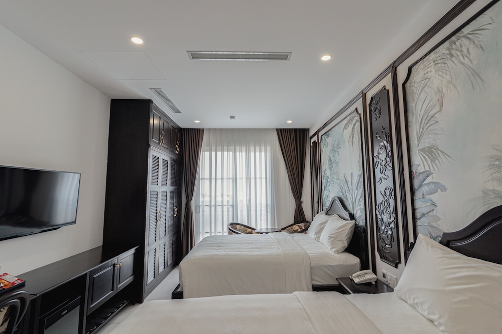 Royal Hotel Phú Quốc ligger i Phu Quoc, en femton minuters bilfärd från både Sao Beach och An Thois linbanestation. Detta hotell ligger 11,2 km från Sun World Hon Thoms naturpark och 20,4 km från Phu Quocs strand. Känn dig som hemma i ett av de 12 luftkonditionerade rummen med minibarer och smart-tv. Gratis wi-fi gör att du kan hålla dig uppkopplad. Delvis öppna badrum med dusch, regndusch och gratis toalettartiklar. På rummet finns telefon, värdeförvaringsskåp och skrivbord. Avstånd avrundas till närmsta decimal.