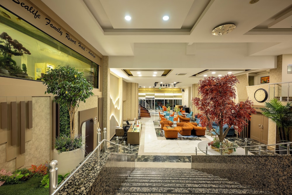 Sealife Family Resort Hotel ligger centralt i Konyaalti, en fem minuters bilfärd från både Konyaalti strand och Konyaalti strandpark. Detta hotell med all-inclusive ligger 24,4 km från Lara strand och 7,8 km från MarkAntalya köpcentrum. Känn dig som hemma i ett av de 240 luftkonditionerade rummen med minibarer och LED-tv. Gratis wi-fi gör att du kan hålla dig uppkopplad, och satellit-tv erbjuder underhållning. Privat badrum med dusch, gratis toalettartiklar och hårtorkar. På rummet finns telefon, värdeförvaringsskåp och vattenkokare. Avstånd avrundas till närmsta decimal.