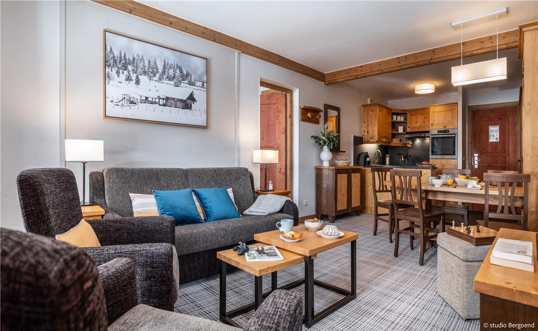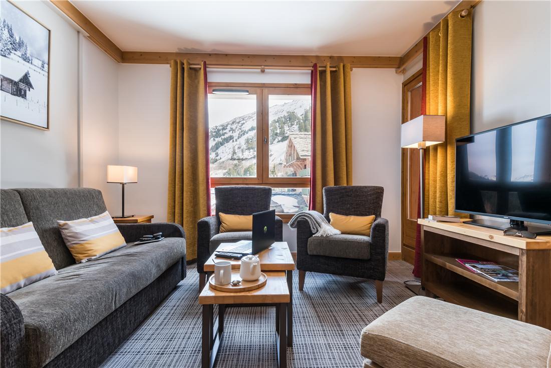 Härligt ombonade lägenheter med suveränt centralt läge och allt du behöver utanför knuten! Lägenhetshotellet består av åtta fristående byggnader, alla i centrum av den mysiga, bilfria byn. Du möts av en värmande brasa i den öppna spisen i receptionen och till ditt förfogande står ångbad, bastu och motionsrum och pool (ingår). I byggnaden "Les Sources de Marie" finns en avslappnande spa anläggning med olika behandlingar - mot avgift. Aktivitetsklubbar för barn i olika åldrar samt barnpassning finns. Du kan också hyra videofilmer och mobila PlayStation.Trådlöst Internet ingår. Garage € 119/vecka. Shuttlebuss finns till byarna i närområdet - gratis.
