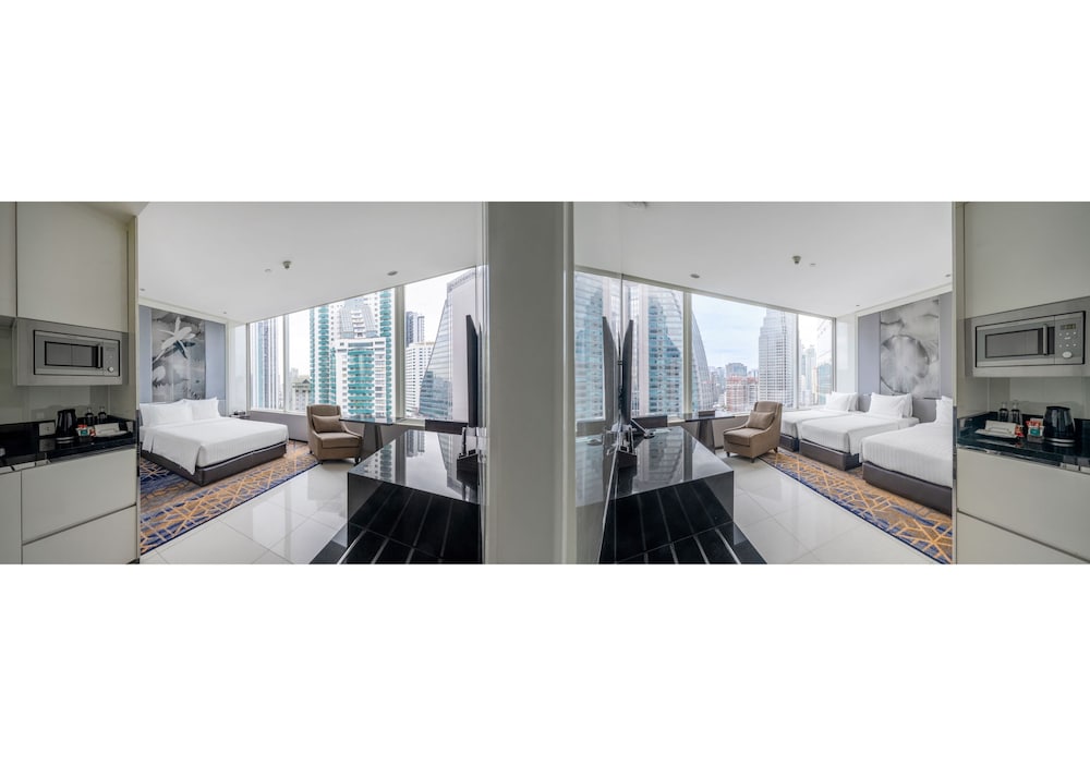 Grande Centre Point Hotel Terminal 21 placerar dig mitt i Bangkok, ett stenkast från Terminal 21 Shopping Mall och bara tio minuters promenad från Benjakitti Park. Detta hotell med familjevänlig profil ligger 1 km från EmSphere köpcentrum och 1,5 km från EmQuartier. Känn dig som hemma i ett av de 498 rummen med kylskåp och mikrovågsugn. Sängen har duntäcken och sängtillbehör av högsta kvalitet. Gratis wi-fi gör att du kan hålla dig uppkopplad, och kabel-tv erbjuder underhållning. Privat badrum med gratis toalettartiklar och hårtorkar. Avstånd avrundas till närmsta decimal.