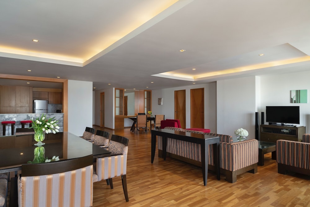 Gäster har tillgång till bland annat gratis internet, business-service och kemtvätt/tvättjänster. På detta hotell erbjuds event- och konferenslokaler såsom konferenscenter och mötesrum. Gäster erbjuds flygtransfer tur/retur mot en avgift (tillgänglig dygnet runt), och gratis parkeringsservice finns på plats. Här erbjuds utomhuspool och fitnesscenter. Boendet har även gratis wi-fi, conciergetjänster och barnpassning mot en avgift. Gäster kan enkelt hoppa på den kostnadsfria bussen som rör sig inom ett område på 1 km. Njut av franska köket på Chef's Table, en av de 5 restaurangerna detta hotell ståtar med, eller stanna på rummet och nyttja dess rumsservice dygnet runt. Koppla av med en drink på boendets bar vid poolen eller en av 6 barer/lounger. Här erbjuds en gratis frukostbuffé dagligen mellan 06.00 och 11.00.- Avgift för flygtransfer: THB 2500 per fordon (enkel resa, max. antal passagerare 3)
