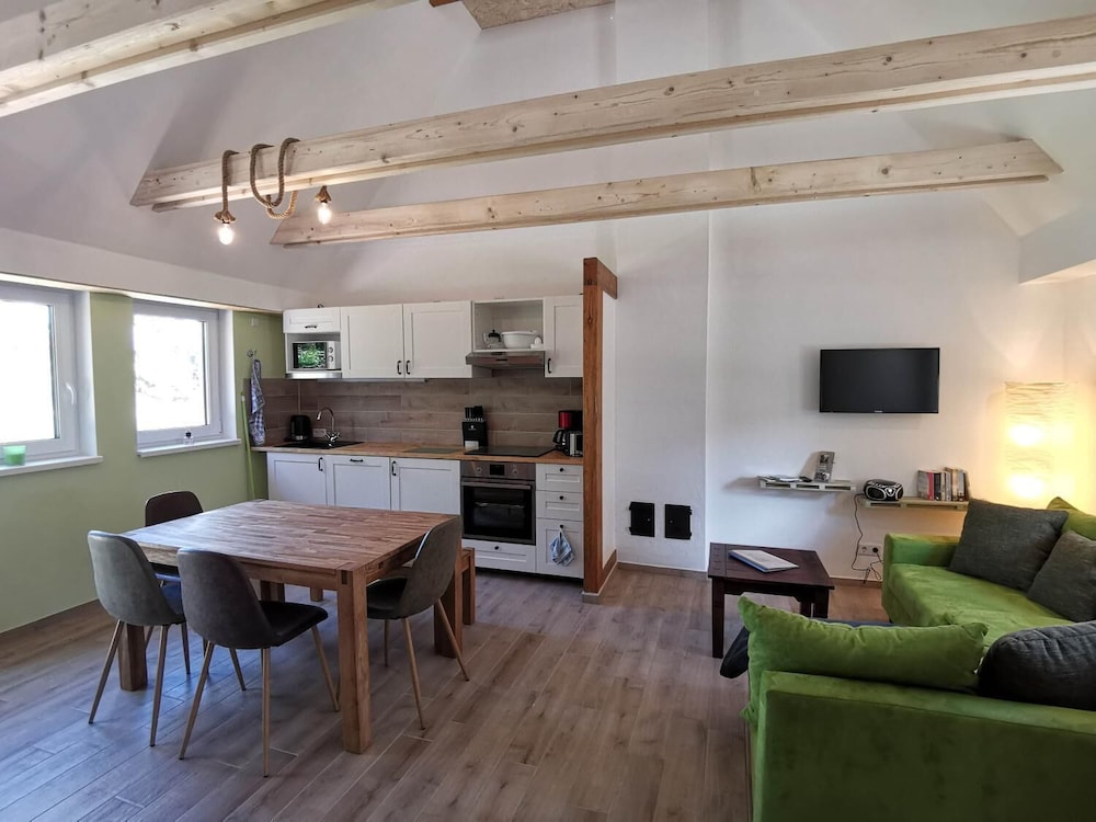 Naturhof Usedom ligger i Mölschow nära stranden, ett stenkast från Usedom naturpark och 3 min med bil från Upp och ner huset. Denna stuga med familjevänlig profil ligger 2,7 km från Piraten der Ostsee Abenteuer-Minigolf och 2,9 km från Schmetterlingsfarm Trassenheide. Känn dig som hemma i ett av de 2 rummen som har kök med kylskåp och ugn. Rummen har privata balkonger/terrasser. Gratis wi-fi gör att du kan hålla dig uppkopplad, och en platt-tv med satellitkanaler erbjuder all underhållning du behöver. På rummet finns separata sittutrymmen och mikrovågsugnar; gratis spjälsängar finns på begäran. Avstånd avrundas till närmsta decimal.