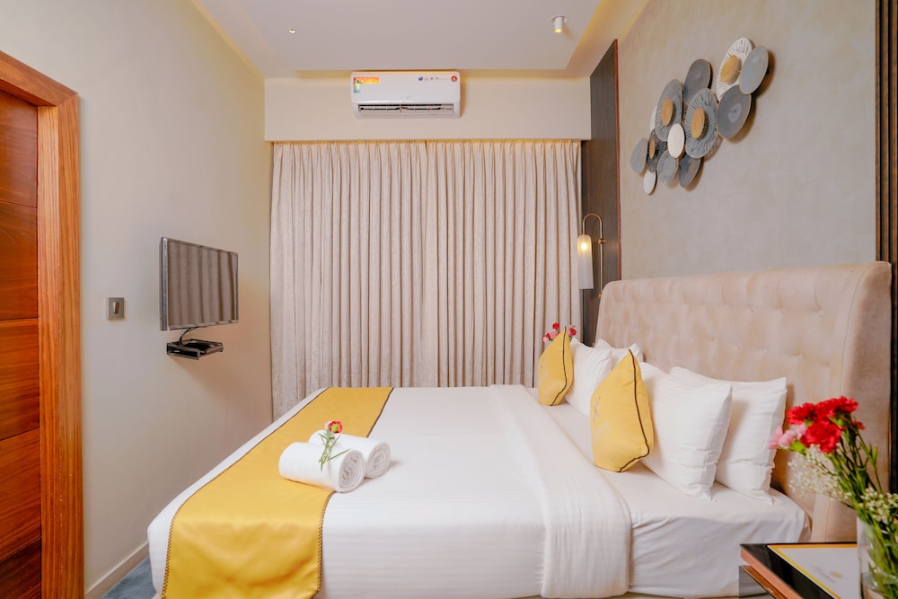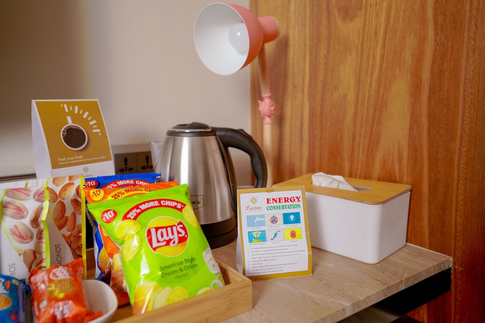 I Bengaluru-området Jeevanbhima Nagar ligger Lazdana Hotel Bangalore, en tio minuters bilfärd från både M.G. Road och Cubbon-parken. Detta hotell ligger 11,7 km från Bangalores palats och 7,2 km från UB City. Känn dig som hemma i ett av de 40 luftkonditionerade rummen med LCD-tv. Gratis wi-fi gör att du kan hålla dig uppkopplad, och satellit-tv erbjuder underhållning. Privat badrum med dusch, gratis toalettartiklar och hårtorkar. På rummet finns telefon, skrivbord och separata sittutrymmen. Avstånd avrundas till närmsta decimal.
