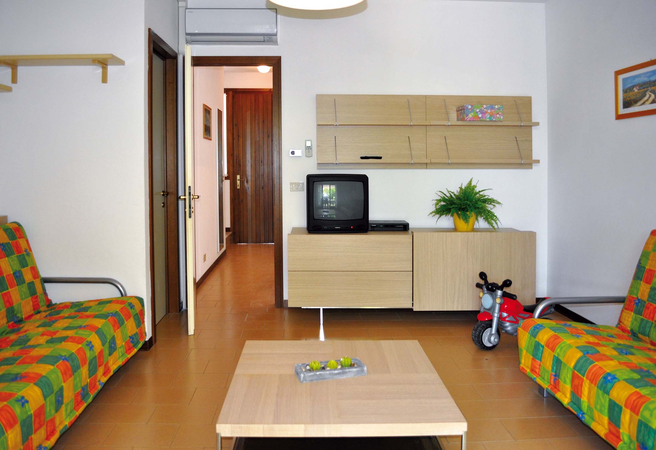 Trevlig lägenhetsresidence med en grönskande trädgård och härlig pool med separat barnpool. Varje lägenhet har terrass med en egen grill och från terrassen går du direkt ut till poolområdet. Wi-Fi är gratis och finns tillgängligt vid poolområdet. Första set med sänglinne och handdukar ingår.