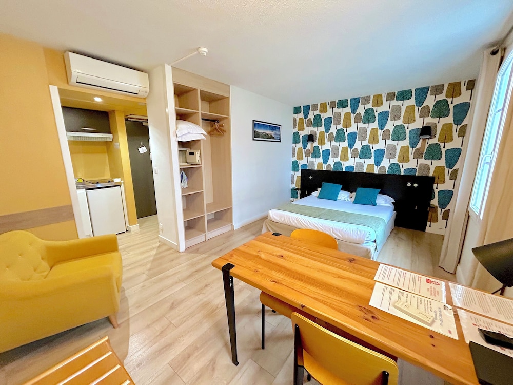 Hôtel & Appart-hôtel Olatua, Bidart ligger centralt i Bidart, 4 min promenad från Biscayabukten och 9 min från Plages de Bidart. Detta lägenhetshotell med golfbana ligger 2 km från Bid'a Parc och 3,1 km från Ilbarritz Golf. Känn dig som hemma i ett av de 12 luftkonditionerade rummen med platt-tv. Gratis wi-fi gör att du kan hålla dig uppkopplad, och satellit-tv erbjuder underhållning. Badrummen har gratis toalettartiklar och hårtorkar. På rummet finns värdeförvaringsskåp och skrivbord. Avstånd avrundas till närmsta decimal.