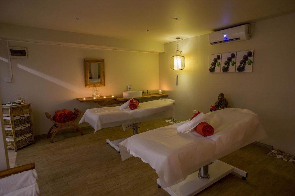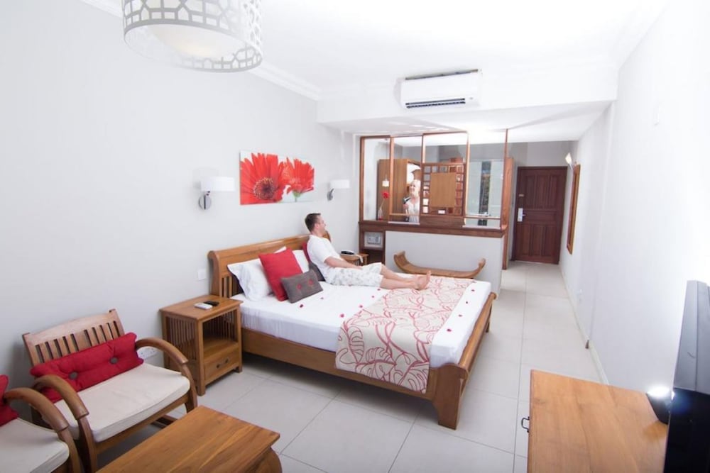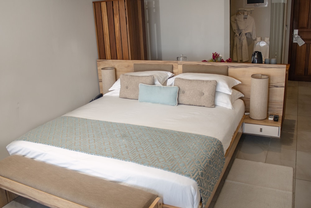Le Peninsula Bay Beach Resort ligger i Blue Bay på stranden, ett stenkast från Blue Bay-stranden och en 2 minuters bilfärd från Ile des Deux Cocos. Detta hotell vid stranden ligger 2,5 km från Pointe D'esny-stranden och 2,6 km från Ile aux Aigrettes. Känn dig som hemma i ett av de 88 luftkonditionerade rummen med eldstäder och plasma-tv. Gratis wi-fi gör att du kan hålla dig uppkopplad, och satellit-tv erbjuder underhållning. På rummet finns telefon, värdeförvaringsskåp och kaffe- och tebryggare. Avstånd avrundas till närmsta decimal.