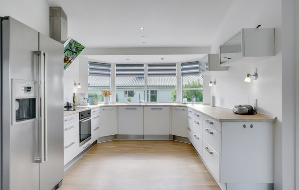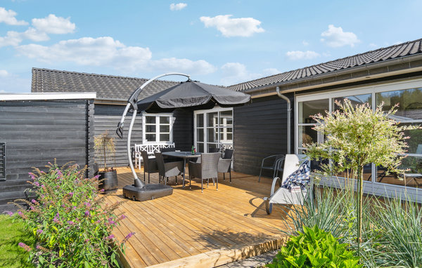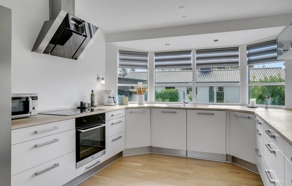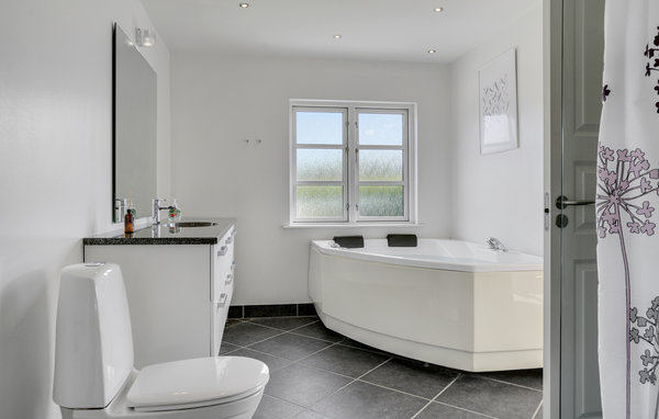 Här välkomnas du av ett semesterhus med vacker design och hög kvalitet. Vackra trägolv och stora panoramafönster väntar på dig. Köket-vardagsrummet är vackert ljust. Funktionaliteten har betonats överallt. I vardagsrummet hittar du möbler i skandinavisk stil och framför det den stora terrassen, som också är täckt. Det finns bra sängar i de 4 sovrummen, så en vilsam natts sömn är garanterad. Det ena badrummet har en lugnande bubbelpool. Hvidbergs strand är stenfri och bred, vilket gör den till en trevlig plats att vara på i alla väder. Du kan också njuta av utsikten över den 27 meter höga klippan Hvidberg Klint. Den är unik för den jylländska östkusten. Från toppen ser du ner på det skogsklädda Trelde Næs och Vejle Fjord. Barnvänliga stränder, god vattenkvalitet och vacker natur gör det här området mycket eftertraktat på sommaren. Många besökare kommer till området mellan Mørkholt och Høll. Inte långt därifrån finns städerna Vejle, Fredericia och Kolding samt Legoland och Givskuds Zoo.