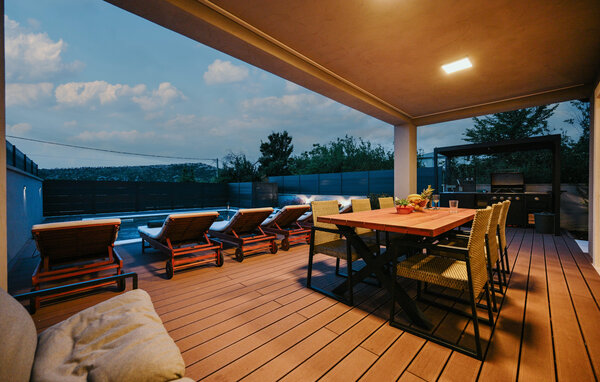 Gå ut på den täckta terrassen och ligg på solstolarna medan dina barn plaskar runt i poolen. På eftermiddagen kan du förbereda maten för grillen i sommarköket och se fram emot ett lyckat slut på din semester.