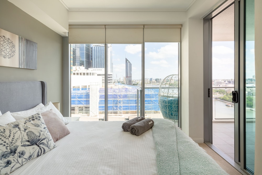Denna lägenhet ligger centralt i Brisbane, en kvarts promenad från både Treasury Building och Queen Street Mall.  Denna lägenhet ligger 0,8 km från Roma Street Parkland och 1 km från Queensland Performing Arts Centre. Slå dig till ro i den här individuellt möblerade lägenheten, som har en stor kyl med frys och en ugn i köket. Det finns en privat möblerad balkong. En 32-tums platt-tv och en mp3-dockningsstation erbjuds, och gratis wi-fi gör att du kan hålla dig uppkopplad. Bekvämligheter som ingår är skrivbord och mikrovågsugn. Städning sker varje vecka. Avstånd avrundas till närmsta decimal.