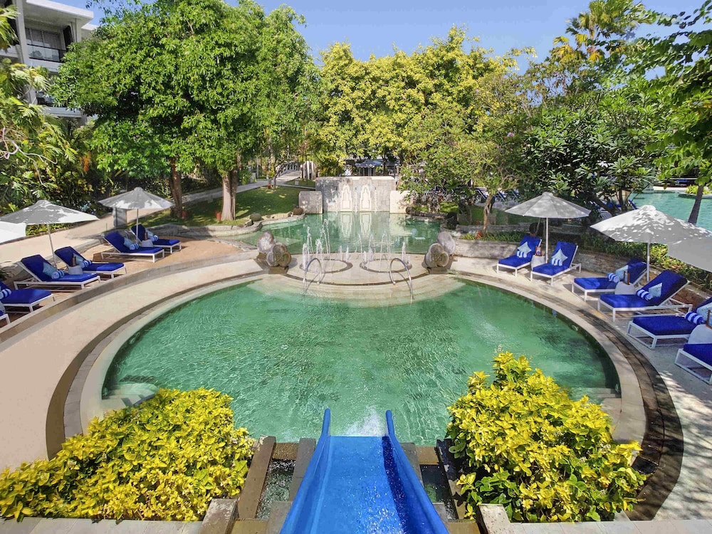 Gäster har tillgång till bland annat business-service, expressutcheckning och gratis dagstidningar i lobbyn. Planerar du ett event i Nusa Dua? På detta hotell finns det event- och konferensutrymmen på upp till 2344 kvadratmeter, däribland konferenscenter och mötesrum. Gäster har mot en avgift tillgång till flygtransfer tur/retur (tillgänglig dygnet runt) och transport till/från kryssningsterminal. Koppla av på deras fullständiga spa, där du kan passa på att njuta av massage, kroppsbehandlingar och ansiktsbehandlingar. Här har du tillgång till 4 utomhuspooler, lazy river och vattenrutschkana. Detta hotell i medelhavsstil har även gratis wi-fi, conciergetjänster och barnpassning mot en avgift. Gäster kan enkelt ta sig till närliggande shoppingområden med deras kostnadsfria transport. Njut av asiatiska köket på Kwee Zeen, en av de 3 restauranger detta hotell ståtar med, eller stanna på rummet och utnyttja dess rumsservice dygnet runt. Du kan även hitta lättare måltider på deras kafé. Koppla av med en drink på boendets strandbar, bar vid poolen eller en av 3 barer/lounger. Frukost enligt egen beställning serveras på vardagar mellan 06.30 och 10.30 och på helger mellan 06.30 och 11.00 mot en avgift. I enlighet med lokala bestämmelser måste alla besökare stanna på boendet under det hinduiska nyårets dag av tystnad, Nyepi, under ett dygn (med start kl. 06.00). Nyepi infaller oftast i mars eller april (datumen ändras varje år). In- och utcheckning sker inte under detta dygn. Ngurah Rai Airport (Bali International Airport) är också stängd under Nyepi.- Avgift för frukost enligt egen beställning: IDR 484000 för vuxna och IDR 241998 för barn