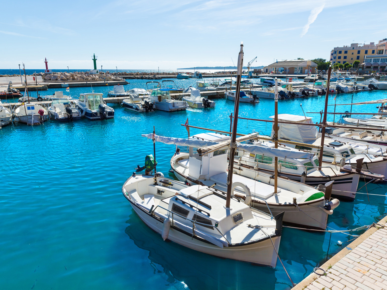 Småbåtshamnen är hjärtat av Cala Bona och en populär samlingsplats både dag och kväll. Här kan du njuta av utsikten över båtarna, boka en båttur för att utforska Mallorcas kust eller äta middag på en av de många restaurangerna som ligger direkt vid vattnet.