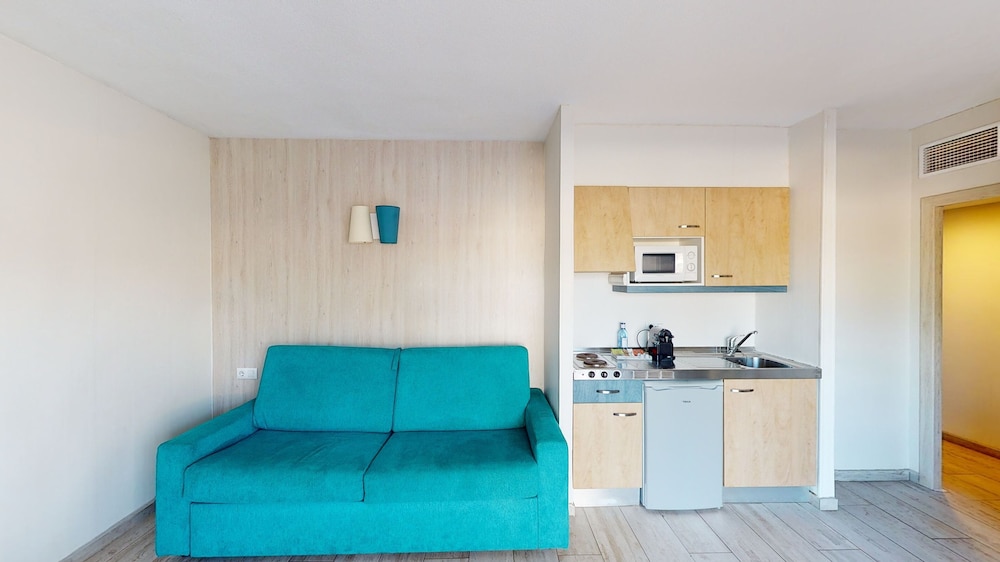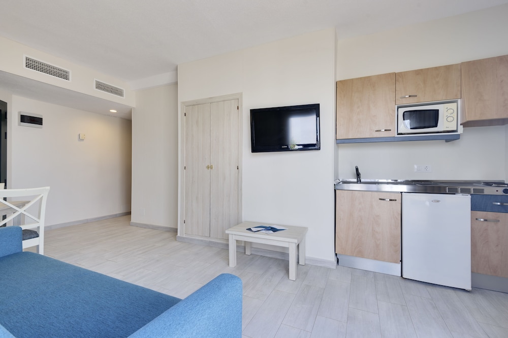 Aparthotel Marinda Garden ligger i Ciutadella de Menorca nära stranden, en tio minuters promenad från både Aquarock Parque Acuático och Cala Bosch. Detta lägenhetshotell med all-inclusive ligger 1 km från Cap d'Artrutx-fyrtornet och 2 km från Playa de Son Xoriguer. Känn dig som hemma i ett av de 204 rummen som har pentry med kylskåp och mikrovågsugn. Rummen har privata balkonger. En platt-tv erbjuder underhållning. På rummet finns telefon, värdeförvaringsskåp och separata sittutrymmen. Avstånd avrundas till närmsta decimal.