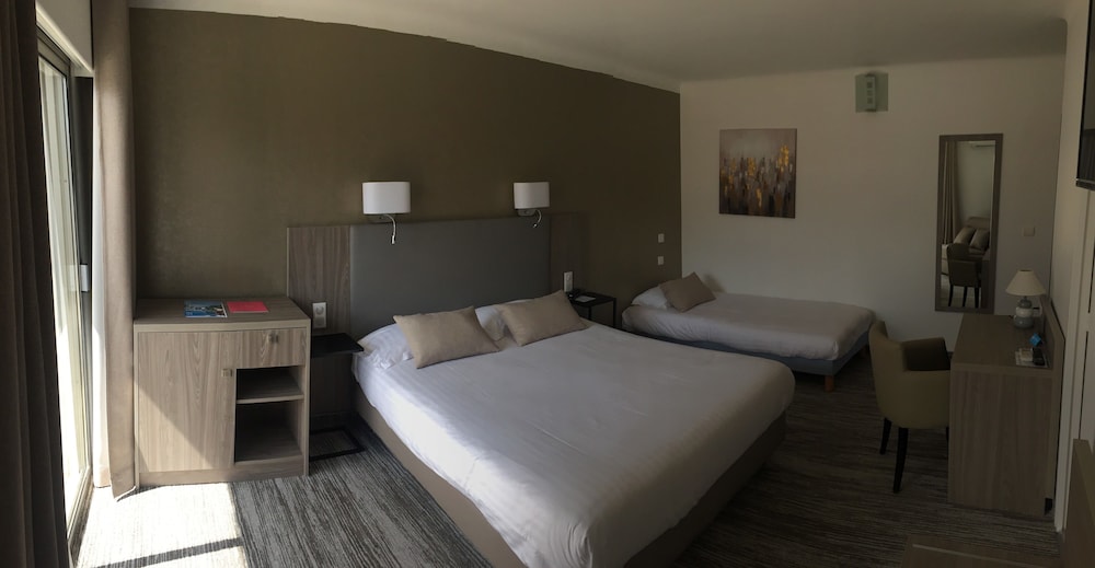 Gäster har tillgång till bland annat flerspråkig personal, bagageförvaring och bibliotek. Avgiftsfri parkering erbjuds på plats. Du får tillgång till inomhuspool, säsongsöppen utomhuspool och hyrcyklar. Detta hotell har även gratis wi-fi, conciergetjänster och bankettsal. Du kan stilla din aptit på detta hotells restaurang som serverar lunch och middag. Vill du hellre mysa på rummet har du dessutom tillgång till rumsservice (under begränsade tider). Avsluta dagen med en drink på boendets bar eller bar vid poolen. Frukostbuffé serveras på vardagar mellan 07.00 och 10.00 och på helger mellan 08.00 och 10.00 mot en avgift. Detta boende har fått sin officiella stjärngradering från Frankrikes Turistutvecklingsbyrå, ATOUT France.Du kommer att ombes att betala följande avgifter på boendet – avgifterna kan inkludera tillämpliga skatter: