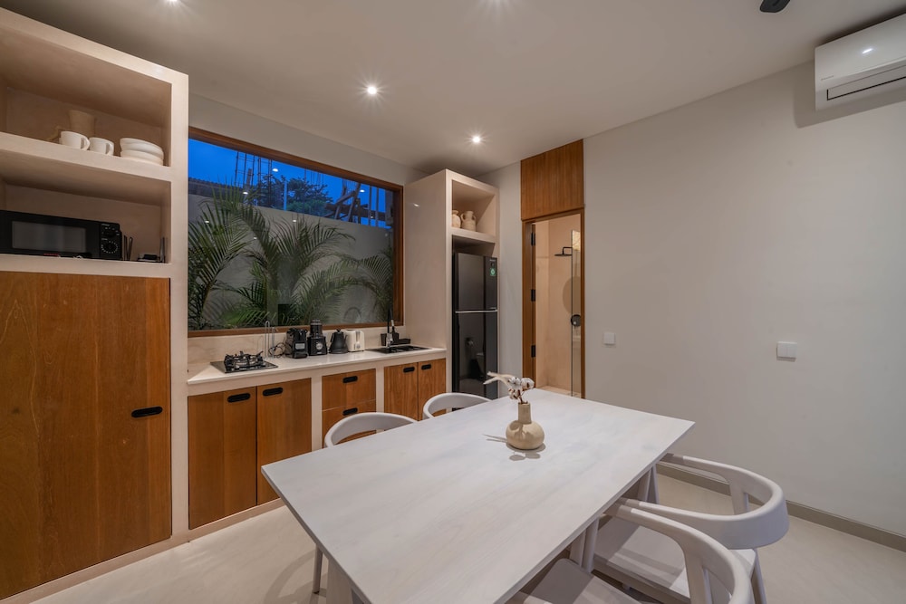 Denna villa ligger i Canggu (i området Babakan), en kvarts bilfärd från både Tanah Lot-templet och Eat Street. Denna villa ligger 15,4 km från Kuta Beach och 8,3 km från Seminyak Beach. Slå dig till ro i den här luftkonditionerade villan som har privat pool. Köket är utrustat med ett kylskåp, en spishäll och en mikrovågsugn. Bekvämligheter som ingår är värdeförvaringsskåp och skrivbord. Städning sker dagligen. Avstånd avrundas till närmsta decimal.