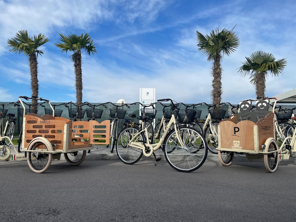 Pareus Beach Resort ligger i Caorle på stranden, 5 min med bil från Pra' delle Torris golfklubb. Detta lägenhetshotell vid stranden ligger 24,1 km från Piazza Mazzini och 49,6 km från Bibione Spiaggia. Känn dig som hemma i ett av de 58 luftkonditionerade rummen med privata pooler och golvvärme. Kök utrustat med stor kyl/frys, spishäll och mikrovågsugn. Gratis wi-fi gör att du kan hålla dig uppkopplad, och en platt-tv erbjuder underhållning. På rummet finns värdeförvaringsskåp och separata sittutrymmen. Städning erbjuds varje vecka. Avstånd avrundas till närmsta decimal.