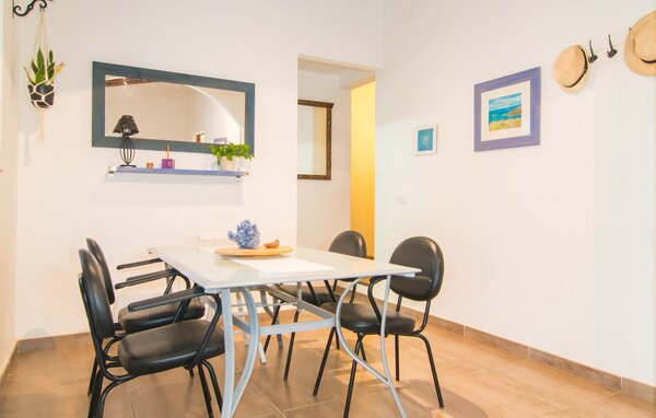 Inuti har villan en smakfull design som prioriterar komfort utan onödig röran. Vardagsrummet har en elegant skinnsoffa och ett matbord för gemensamma måltider. Köket är välutrustat, inklusive tvättmaskin och diskmaskin, så att du kan få ut det mesta av din fritid. Med ett dubbelrum med eget badrum och ett annat med tillgång till ett separat badrum, ser Flaquer till att alla dina behov uppfylls för en avkopplande vistelse. Njut av dina nära och kära och det lugna havet och skapa oförglömliga minnen i denna lugna miljö.