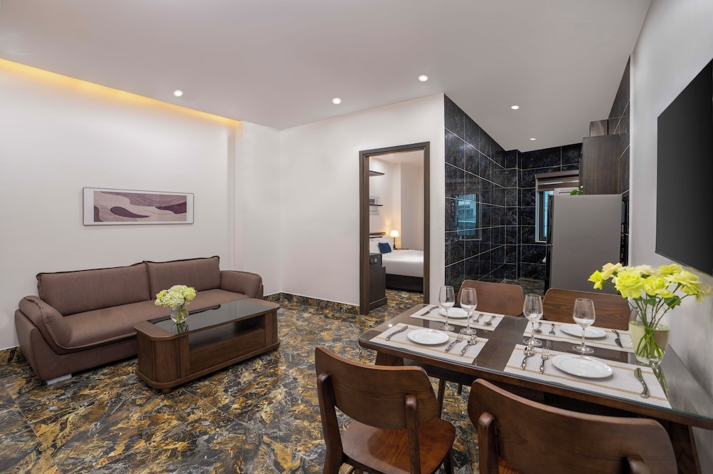Hai An Hotel Suites Ha Noi ligger i Hanoi (i området Mỹ Đình), en tio minuters bilfärd från både Hồ Tây och Ho Chi Minhs mausoleum. Detta hotell ligger 10,3 km från Hoan Kiem-sjön och 10,2 km från Sankt Josefs katedral i Hanoi. Känn dig som hemma i ett av de 45 luftkonditionerade rummen med minibarer. Gratis wi-fi gör att du kan hålla dig uppkopplad. Privat badrum med dusch, regndusch och gratis toalettartiklar. På rummet finns värdeförvaringsskåp och separata sittutrymmen. Städning erbjuds dagligen. Avstånd avrundas till närmsta decimal.