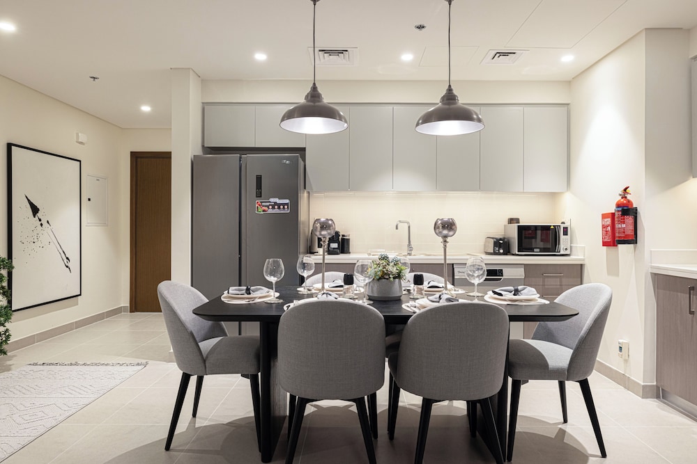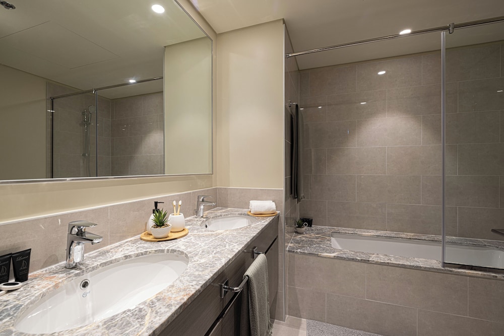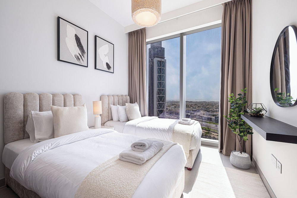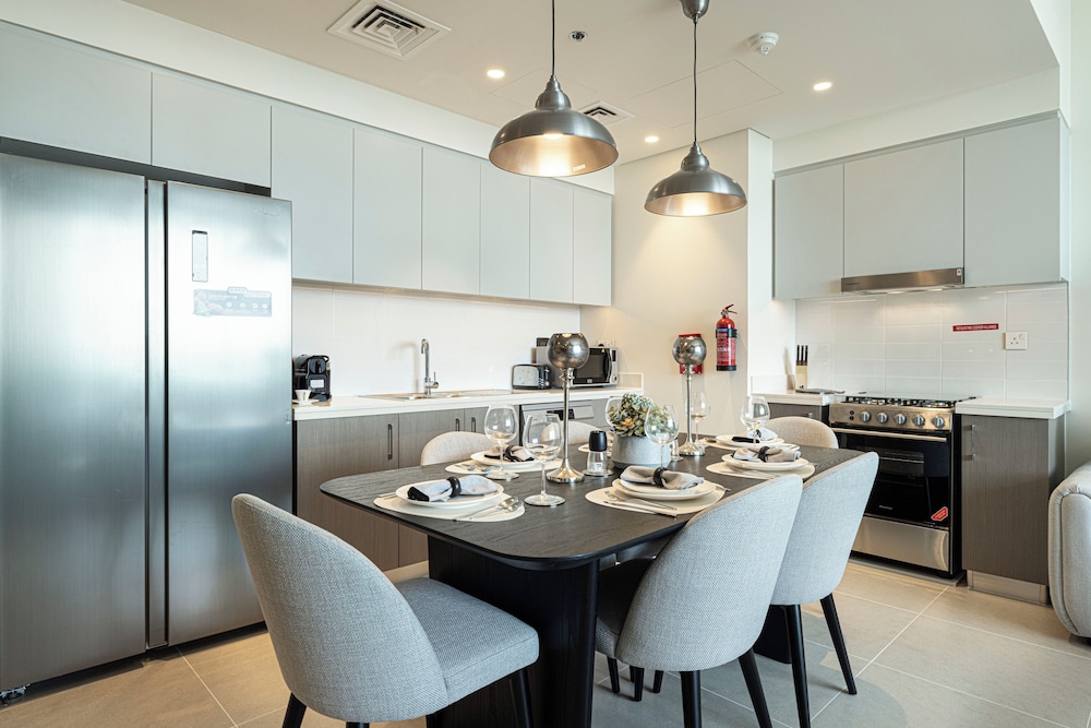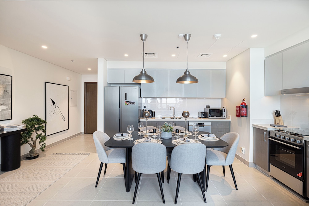 I Dubai-området Centrala Dubai ligger denna lägenhet, en tio minuters promenad från Burj Khalifa och Dubai-fontänen. Denna lägenhet med familjevänlig profil ligger 1,1 km från Dubai Mall och 4,1 km från Dubai World Trade Centre. Slå dig till ro i den här individuellt inredda lägenheten, som har en stor kyl med frys och en ugn i köket. Det finns en privat balkong eller terrass. En 75-tums smart-tv med digitalkanaler står för underhållningen, och gratis wi-fi ser till att du kan hålla dig uppkopplad. Bekvämligheter som ingår är värdeförvaringsskåp och ett separat loungeområde. Städning sker dagligen. Avstånd avrundas till närmsta decimal.