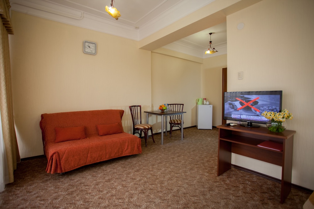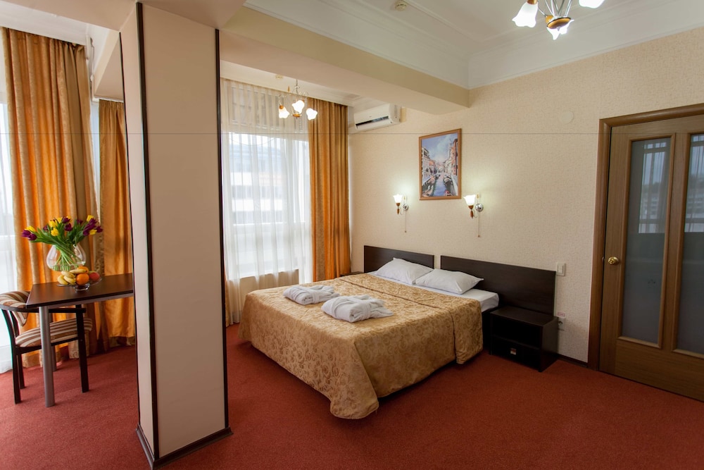 Gäster har tillgång till bland annat expressincheckning, expressutcheckning och reception (öppen dygnet runt). Planerar du ett event i Sotji? På detta hotell finns det event- och konferensutrymmen på upp till 5 kvadratmeter, däribland konferenscenter och mötesrum. Gäster erbjuds flygtransfer tur/retur mot en avgift (tillgänglig på begäran), och avgiftsfri parkering finns på plats. Du får tillgång till bland annat gym, inomhuspool och bastu. Detta hotell har även gratis wi-fi, en frisersalong och hjälp med bokning av biljetter och guidade turer. Du kan äta gott på Mimoza, en temarestaurang med loungebar som specialiserat sig på indiska köket, eller på deras kafé. Kontinental frukost serveras dagligen mot en avgift från 08.00 till 10.00.Du kommer att ombes att betala följande avgifter på boendet – avgifterna kan inkludera tillämpliga skatter: