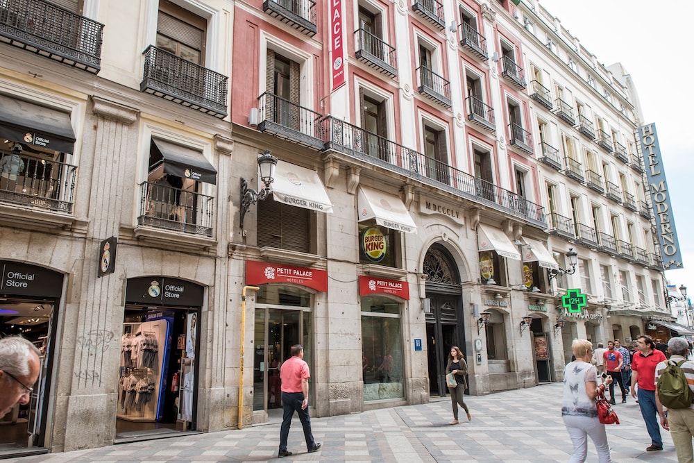 När du bor på Petit Palace Puerta del Sol i centrala Madrid är du endast en kort promenad från Joy Madrid och El Oso y el Madrono. Detta hotell ligger 0,1 km från Calle de Preciados och 1 km från Plaza Mayor. Känn dig som hemma i ett av de 64 luftkonditionerade rummen med minibarer och platt-tv. Med gratis fast internetanslutning och wi-fi håller du dig uppkopplad, medan digitalkanaler står för underhållningen. Privat badrum med dusch, regndusch och gratis toalettartiklar. På rummet finns telefon, laptopanpassade värdeförvaringsskåp och skrivbord. Avstånd avrundas till närmsta decimal.