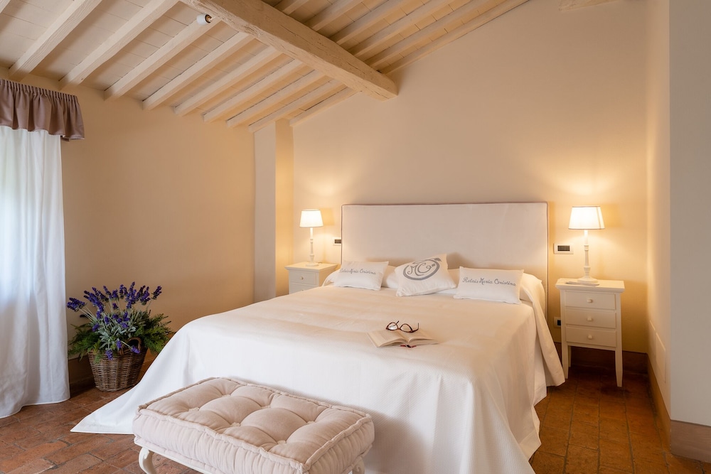 Relais Maria Cristina ligger i Chianni, tio minuter med bil från både Azienda Agricola Castelvecchio och Cascianas varma bad. Detta bed and breakfast med spa ligger 18,1 km från Teatro del Silenzio och 10,8 km från La Spinetta Casanova. Känn dig som hemma i ett av de 3 luftkonditionerade rummen med LCD-tv. Sängen har duntäcken och sängtillbehör av högsta kvalitet. Gratis wi-fi gör att du kan hålla dig uppkopplad. Privat badrum med dusch, lyxtoalettartiklar och bidéer. Avstånd avrundas till närmsta decimal.