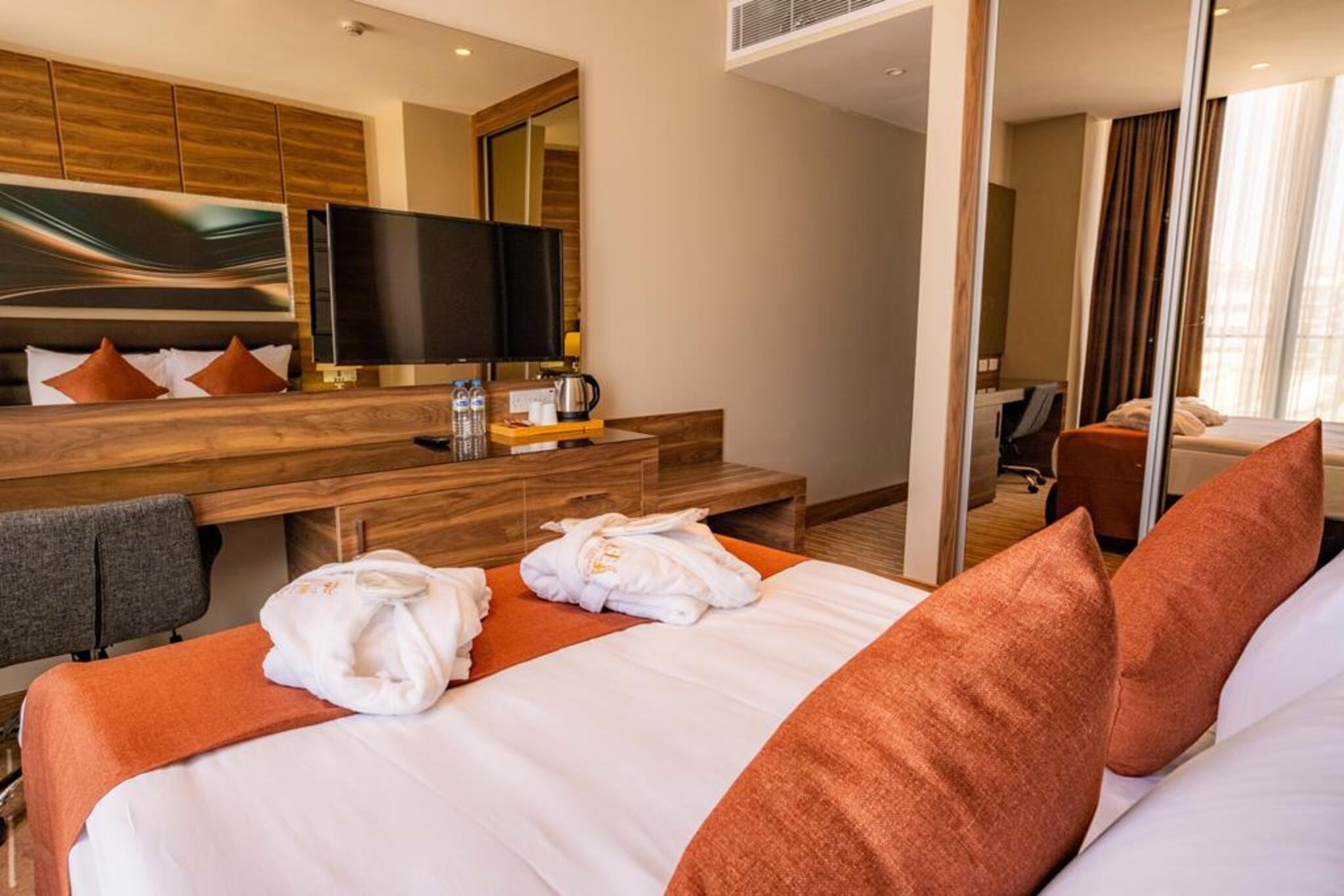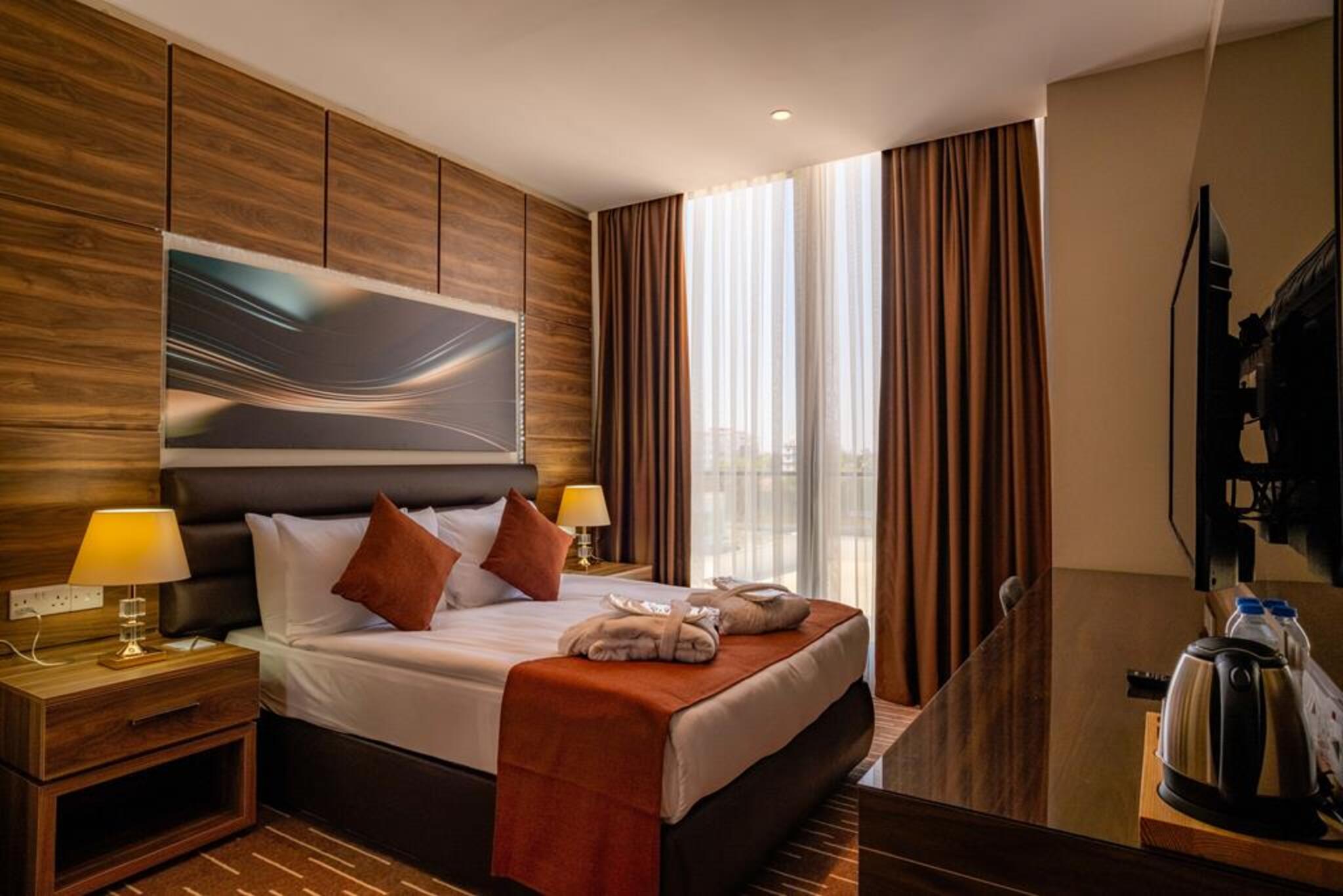 Ekor Elegance Hotel erbjuder sina gäster en atmosfär där de kan njuta av sina semestrar med sina faciliteter, där varje detalj är utrustad med lyx och komfort. Du kan få en energifylld start på dagen med de fullständiga och omsorgsfullt förberedda frukostarna som erbjuds av vårt hotell, och du kan krydda din semester med olika aktiviteter som pågår under hela dagen. Du kommer också att känna dig privilegierad på dina affärsresor hos oss, och du kommer att kunna spendera produktiv tid i våra mötesfaciliteter och bekväma områden. Du kan få en läcker resa med restaurangens frukost- och middagsbuffé, och du kan också utnyttja våra A La Carte- och konditorialternativ, som är tillgängliga dygnet runt. Vi kommer att vara mycket glada att vara värd för dig för att uppleva oförglömliga stunder under din Cypern-semester.