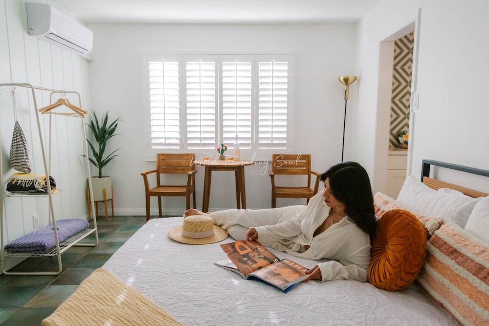 The Good House ligger i Desert Hot Springs i en nationalpark, en 4 minuters promenad från Cabot's Pueblo Museum och 3 minuters bilfärd från Desert Hot Springs stadskärna. Detta hotell med spa ligger 15,5 km från Palm Springs Air Museum och 18,1 km från San Jacinto Mountains. Känn dig som hemma i ett av de 7 luftkonditionerade rummen med smart-tv. Gratis wi-fi gör att du kan hålla dig uppkopplad. Badrummen har badkar/dusch och hårtorkar. På rummet finns kaffe- och tebryggare och strykutrustning kan fås på begäran. Städning erbjuds dagligen. Avstånd avrundas till närmsta decimal.